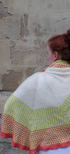 This shawl, using simple slip-stitch techniques and by combining colours, creates a textured and patterned fabric. Only one yarn is worked per row. The half-circle shawl is worked flat, the full-circle is worked in the round.