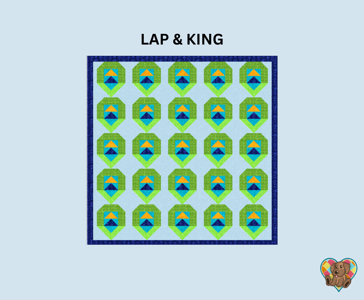 *Note: This pattern includes instructions for a lap (64.5" X 64.5"), twin (76" X 90"), queen (90" X 107"), and king (110" X 110") size quilt.* Blocks are traditional pieced blocks.