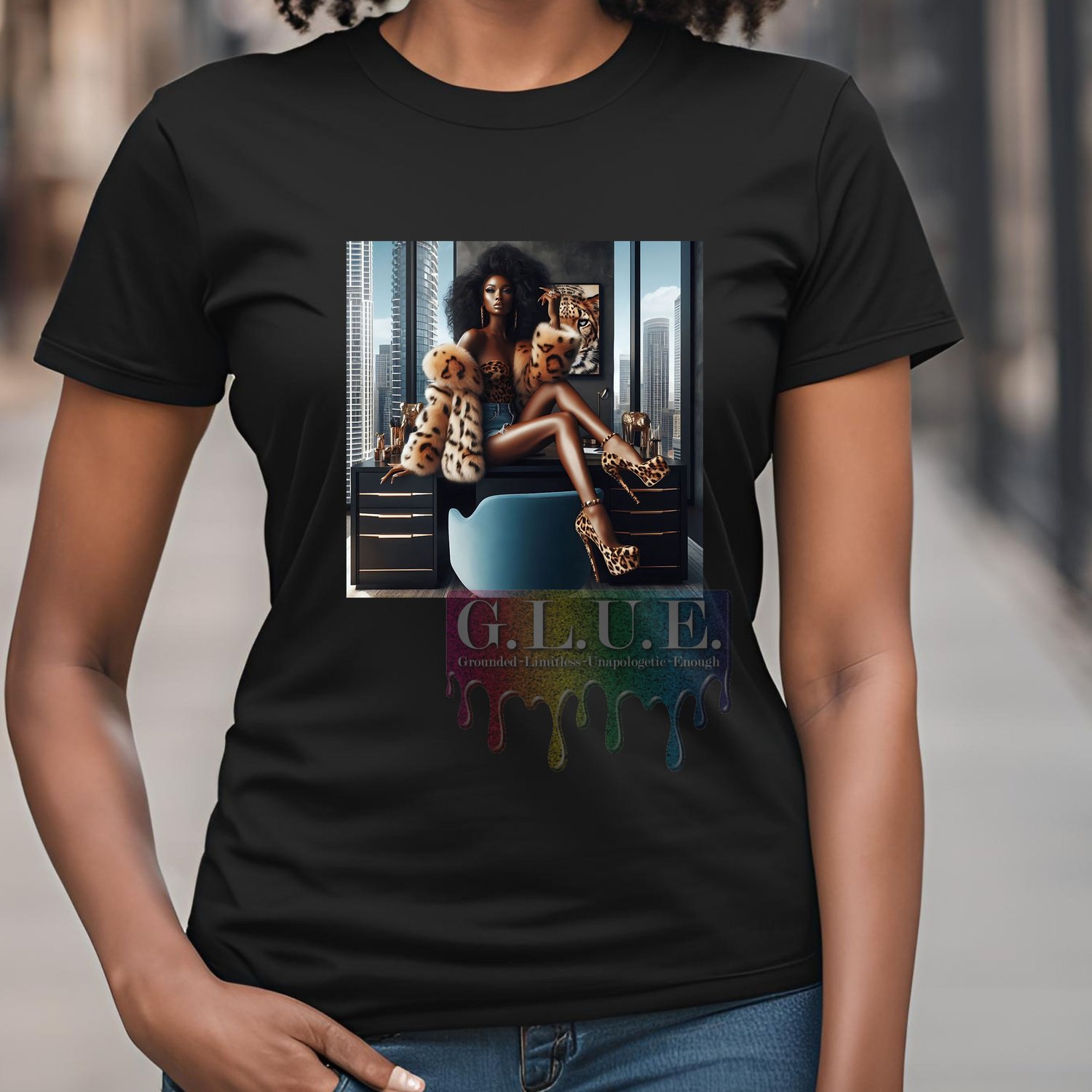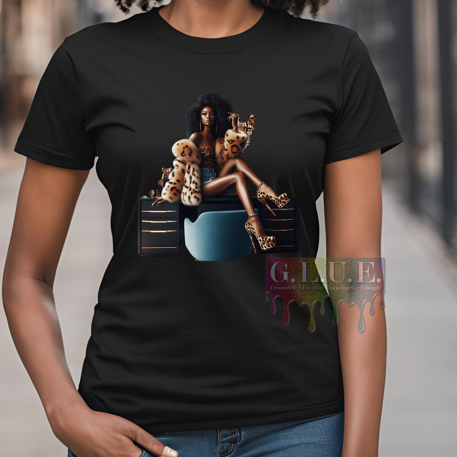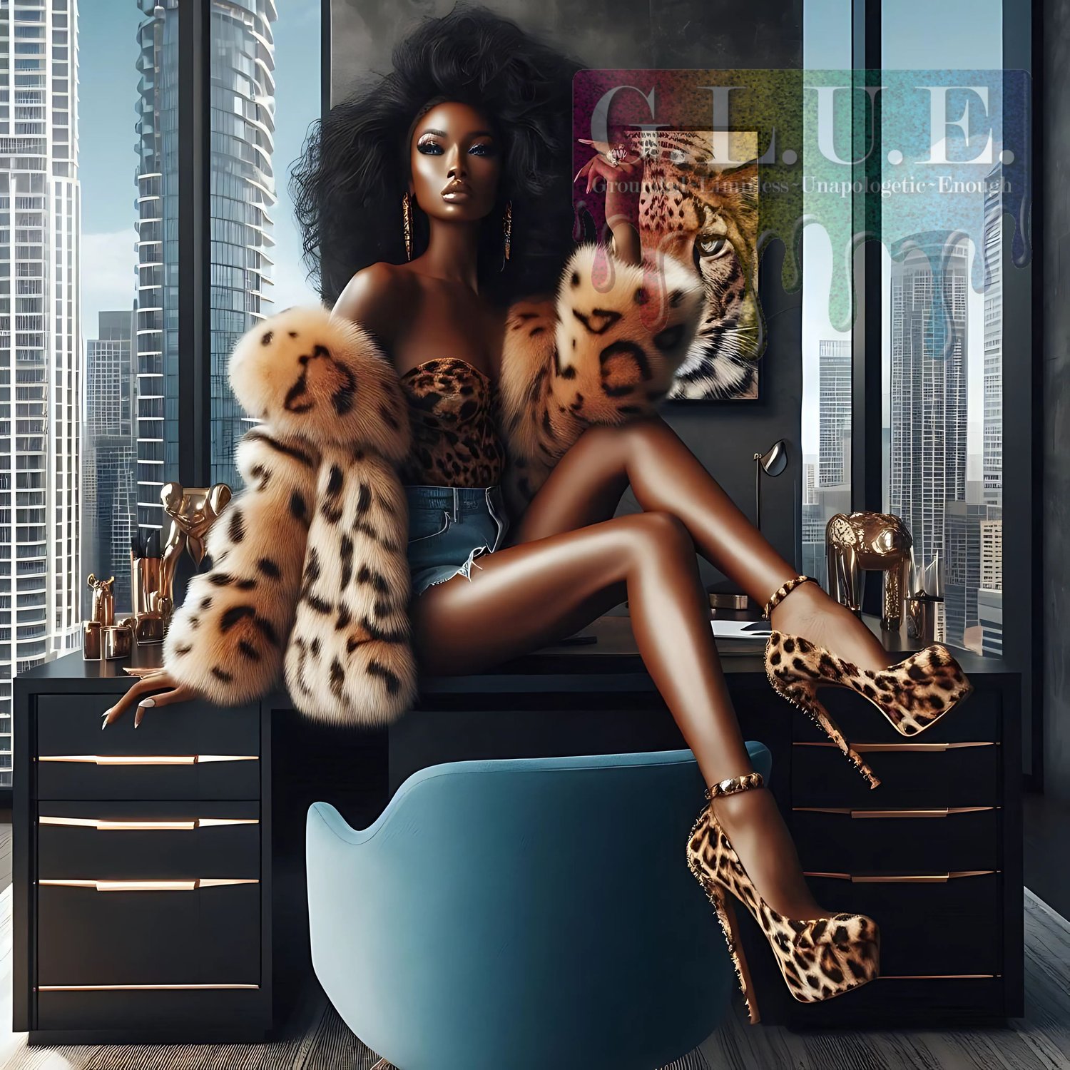 Cheetah Queen Luxe – High-Resolution Black Woman Glam Art | Luxury Office PNG | GLUE Empowerment Aesthetic