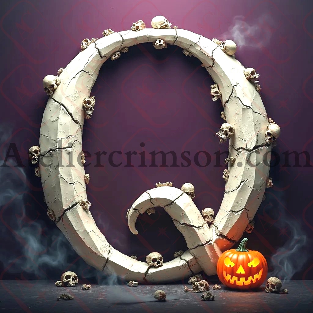 The letter Q spooky character skull Halloween Discover our Spooky Skull Alphabet! Each character is a 3D masterpiece of bone and shadow. Perfect for Halloween designs, gothic projects, or unique wall art. 💀✨ Click to download this high-resolution character and elevate your creations with haunting elegance!