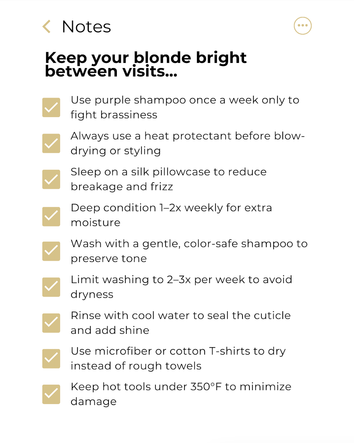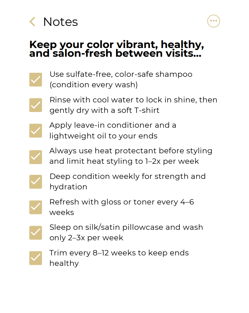 These checklists are your go-to cheat sheets for healthy, beautiful hair. From keeping blonde tones fresh and damage-free to maintaining defined, frizz-free curls, each one gives you simple, everyday steps you can follow at home. Designed to make hair care feel easy and doable, they’re the perfect starting point for anyone who wants salon results between appointments — and if you’re ready for deeper routines and pro secrets, you can dive into my full guides.