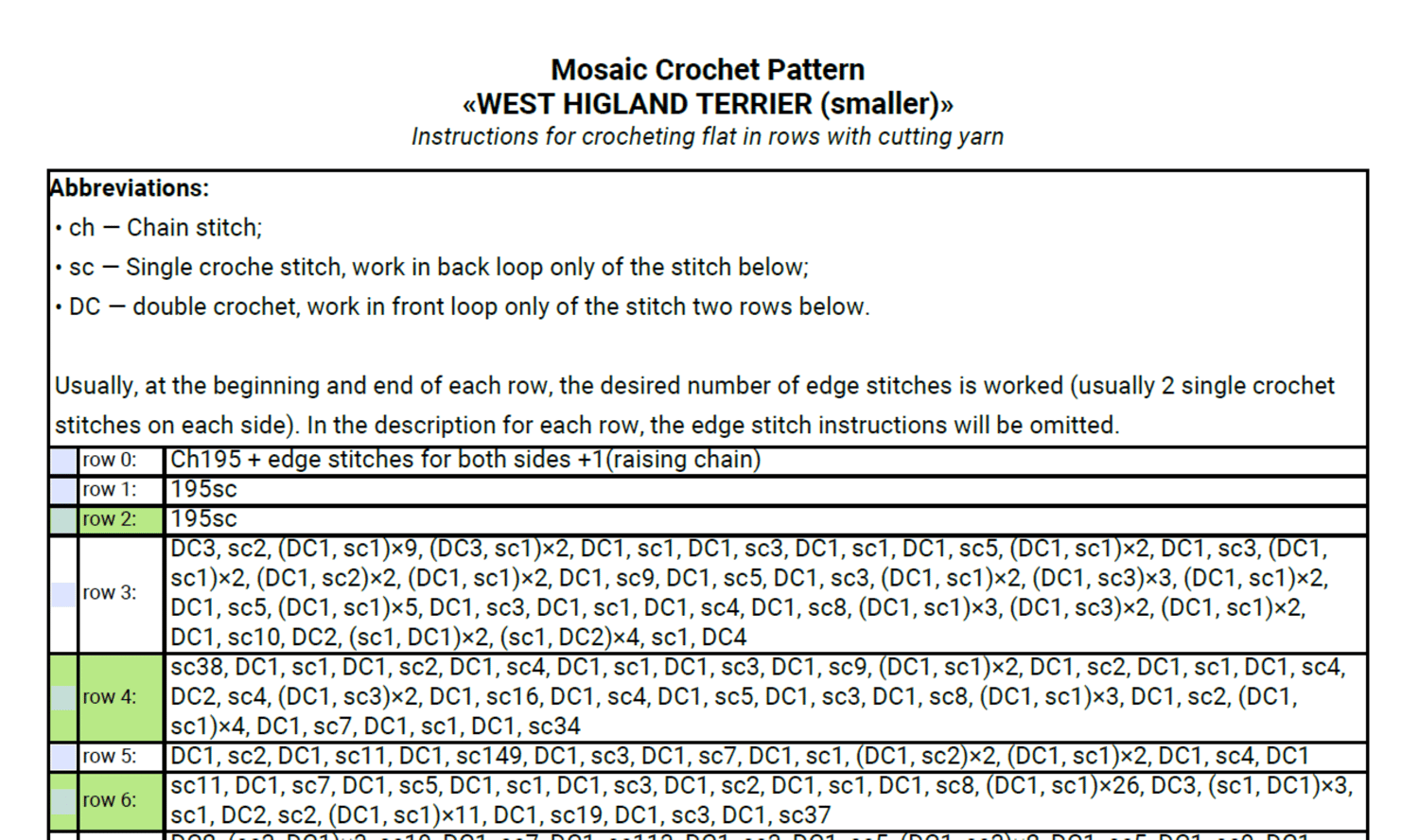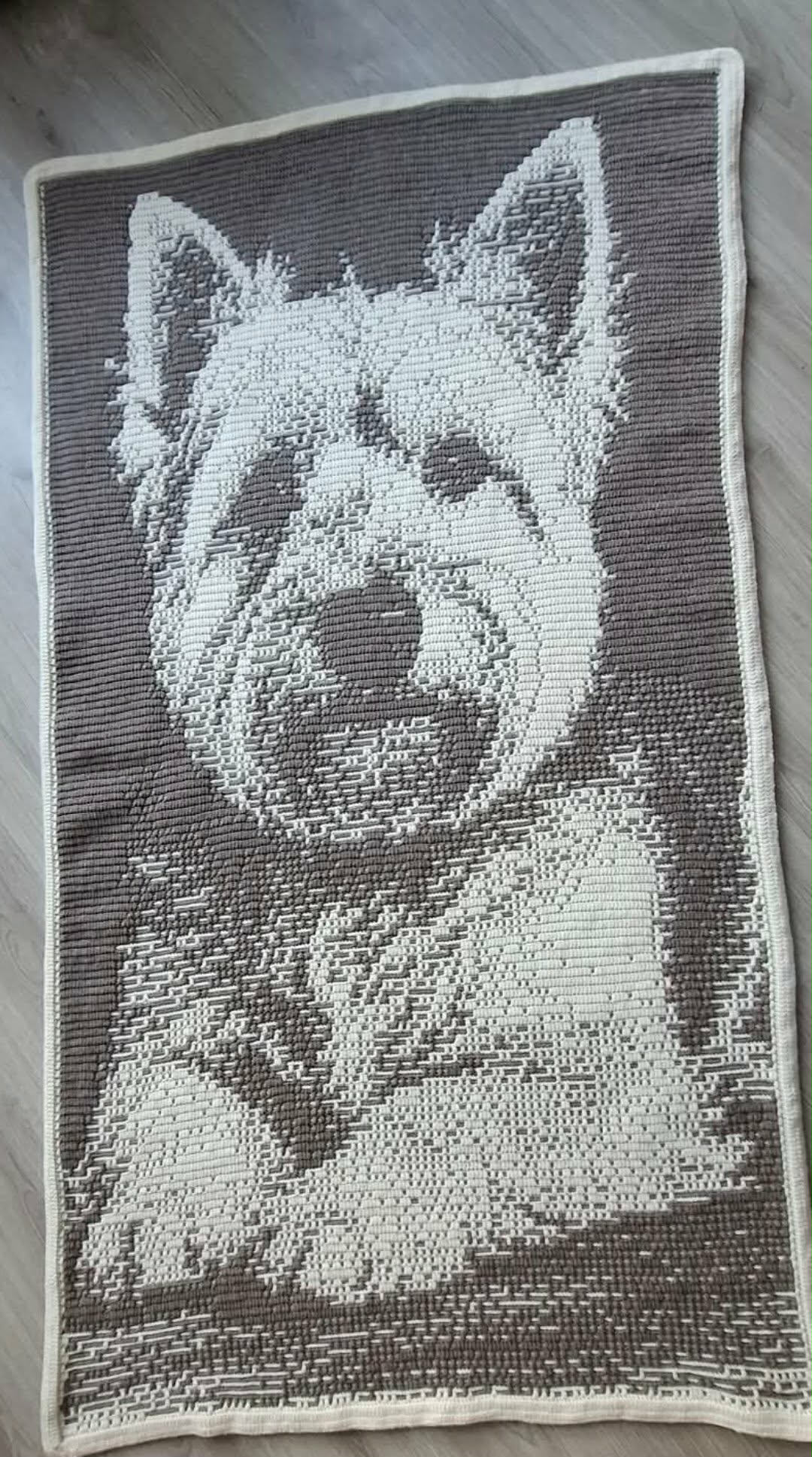Overlay Mosaic Crochet Afghan, West Highland Terrier, Written Pattern row by row, Big Chart Xs, PDF
