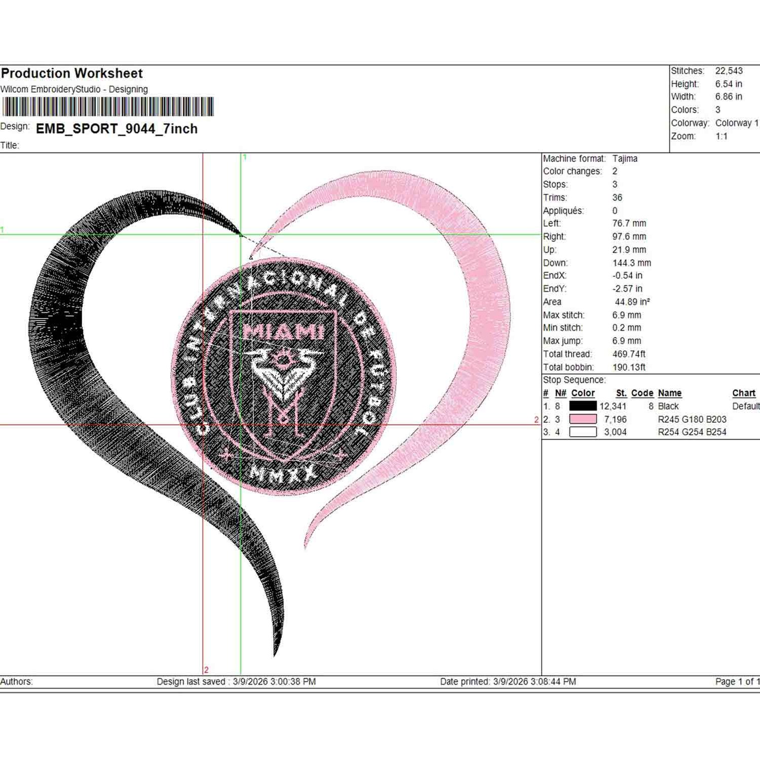 MLS Inter Miami CF Heart Logo Embroidery Designs, Inter Miami CF Embroidery Files, MLS Inter Miami CF Logo Embroidery, Major League Soccer Machine Embroidery Design, Digital Download