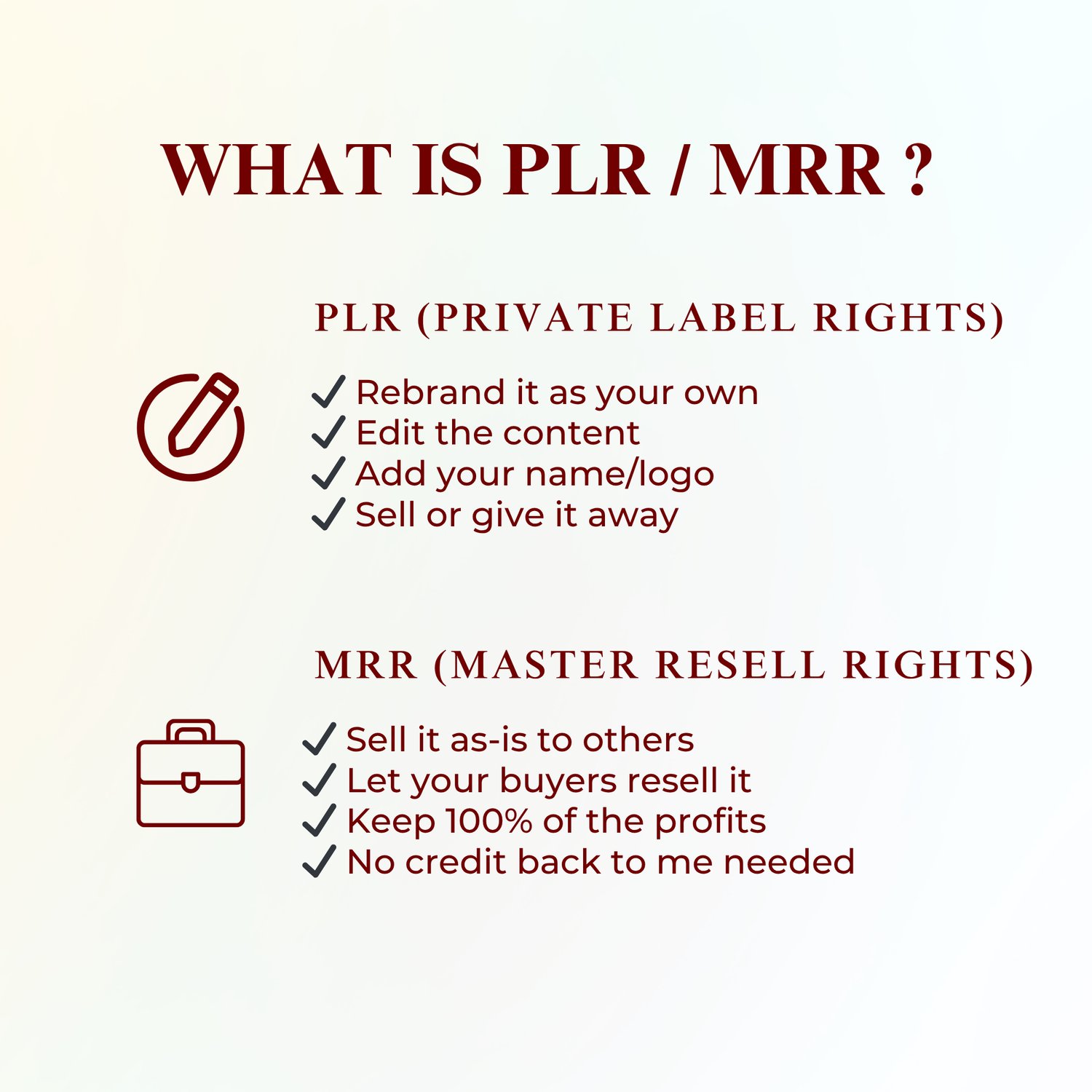 - This PLR/MRR bundle is a starting point for your projects; feel free to edit, customize, and make it your own. Some platforms may require changes before publishing.