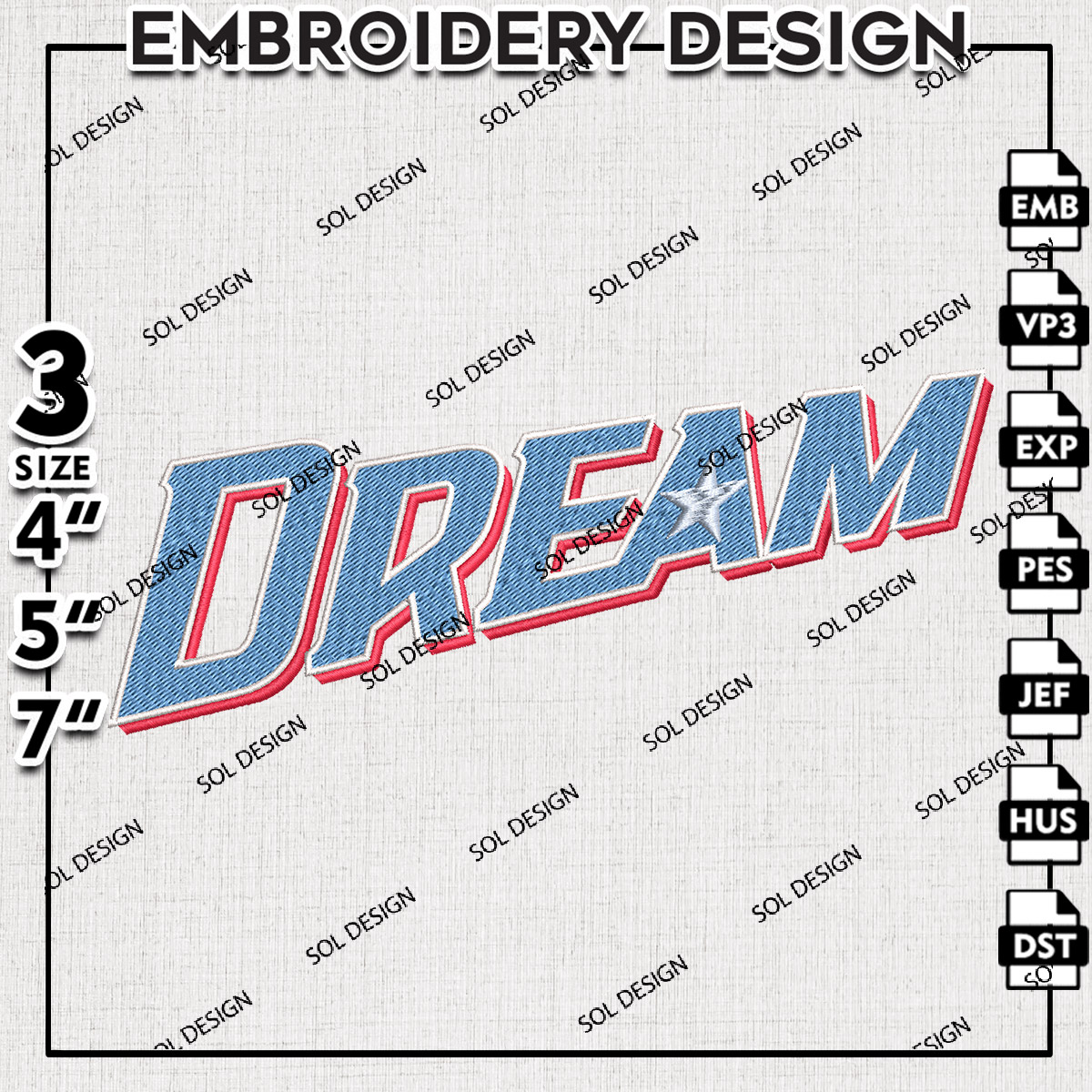 WNBA Dream Team Embroidery Files, WNBA Atlanta Dream Team Embroidery Designs, Basketball Teams, 3 sizes, Machine embroidery designs, Digital Download
