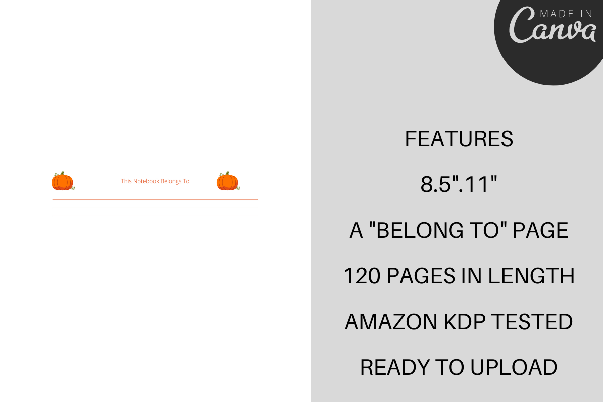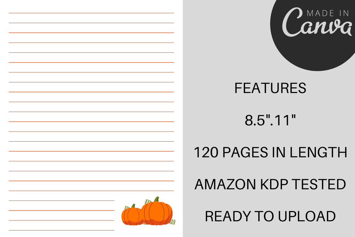 PUMPKIN THEMED KDP LINED PAPER, LOW CONTENT BOOK FOR KDP READY UPLOAD, PUMPKIN KDP JOURNAL PAPER, JOURNAL NOTEBOOK MOCKUPS, KDP CANVA NOTE