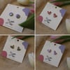 Material: Polymer Clay, UV-Resin (Versiegelung), vergoldeter Edelstahlstecker (nickelfrei)