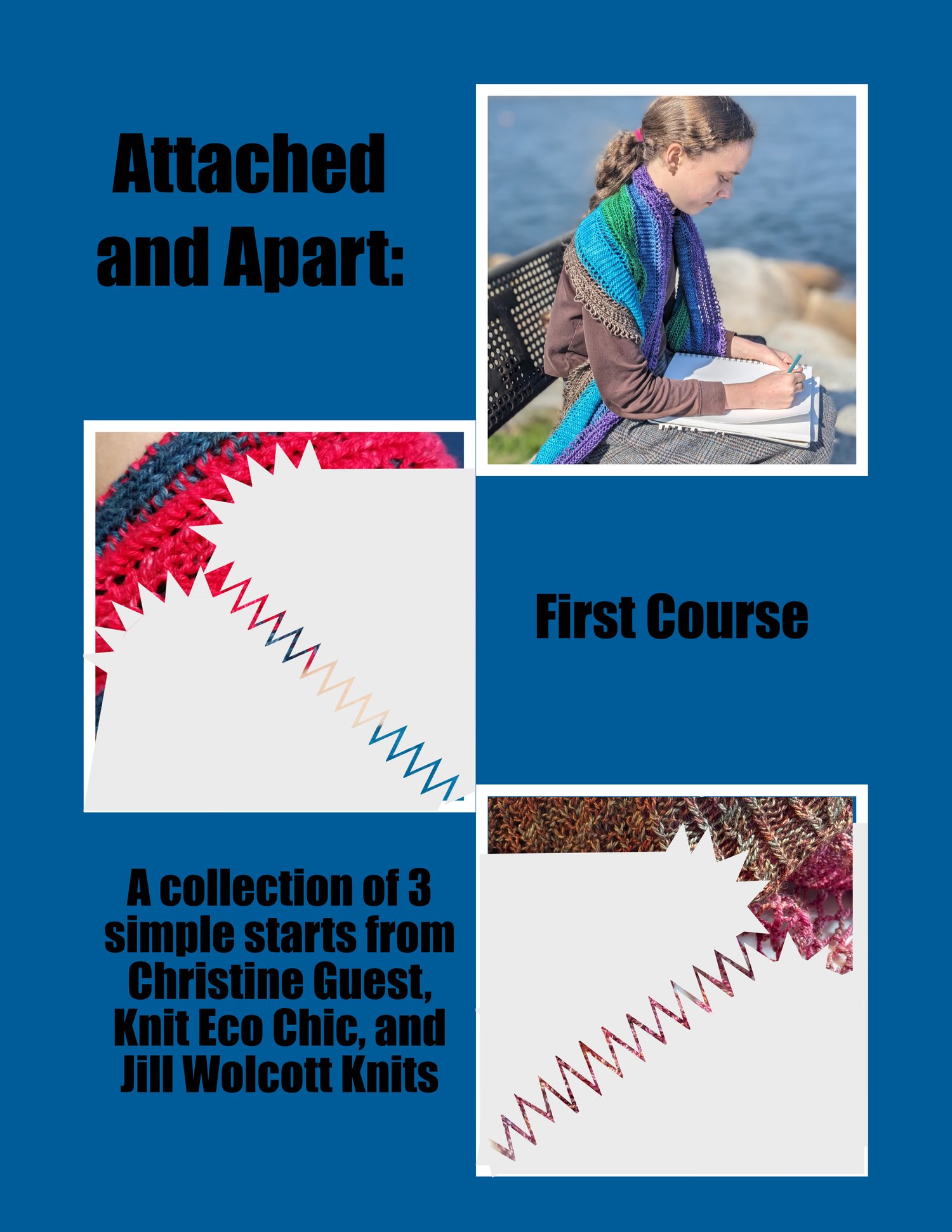 Christine Guest, Jill Wolcott, and yours truly joined up to bring you a two part eBook collection. Part 1, Attached and Apart: First Course, features three appetizer sized projects for your fall knitting pleasure. Part 2, Attached and Apart: Main Course, features larger projects and will debut during selfish knitting month (January) of 2025.
