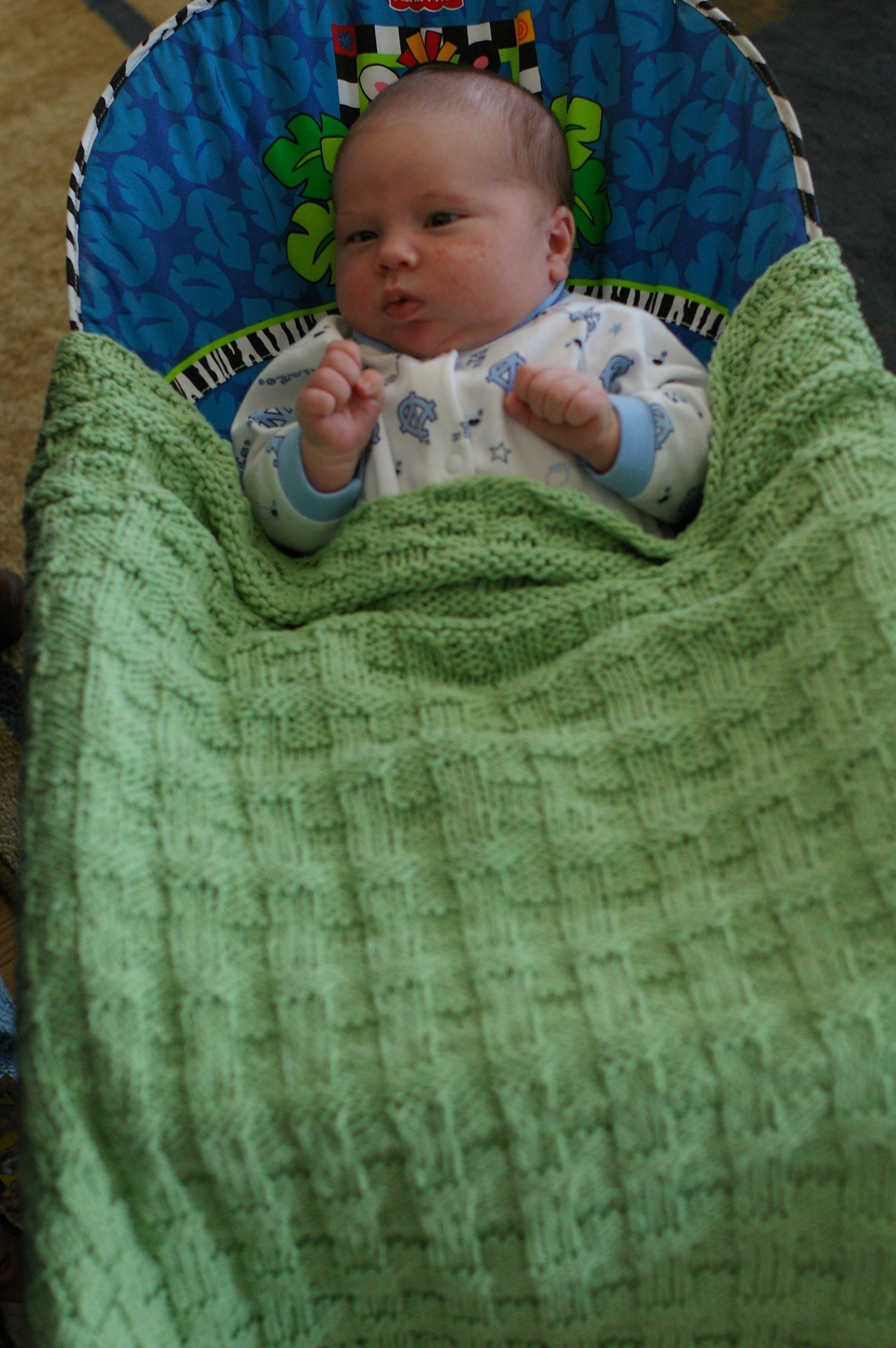 Some ancient and relatively simple stitches are just made for baby blankets. The Harris Tweed Stitch is one such. It is easy to memorize, reversible, and results in a fabulous three-dimensional texture that will please Mom if not baby. This pattern has special meaning for me, since Harris is the middle name of both my son and his godfather.