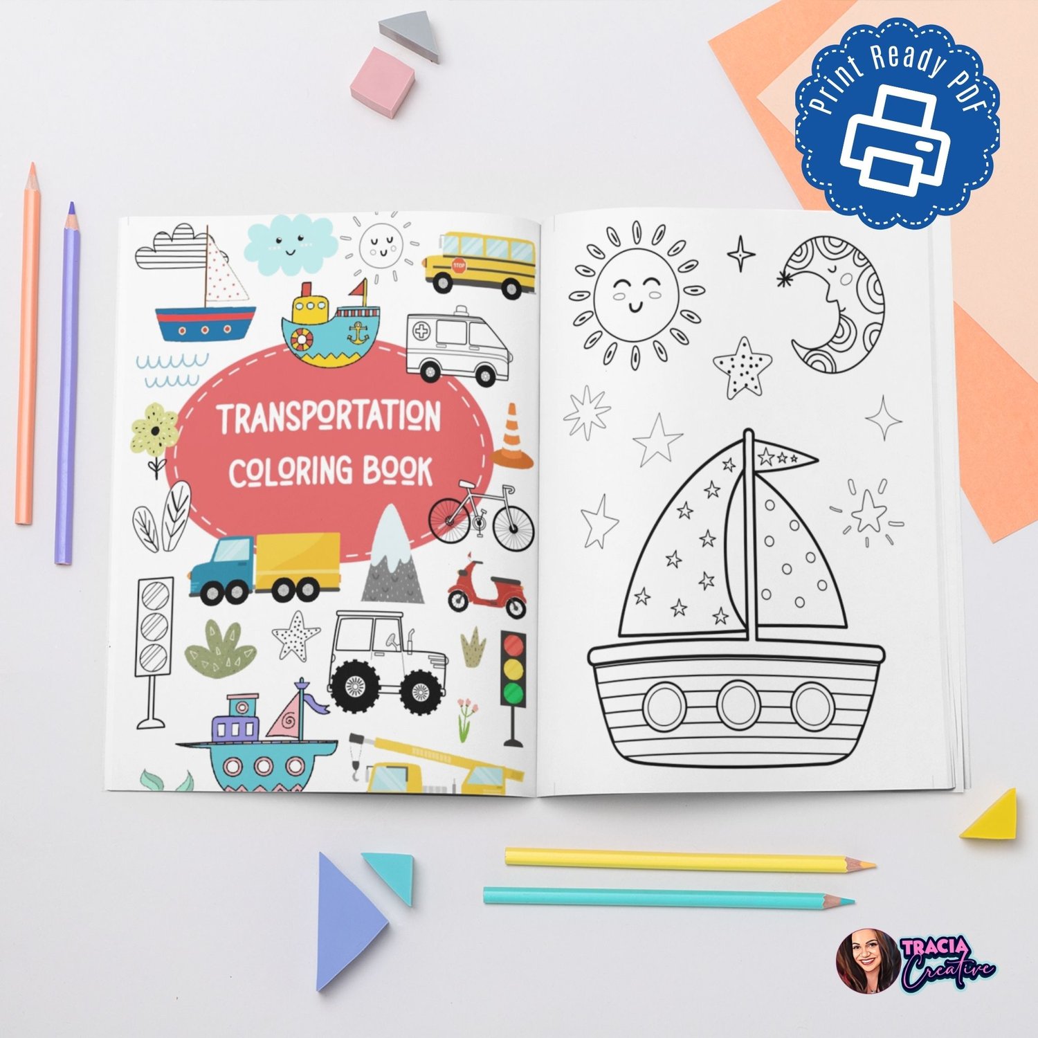 Embark on a creative journey with our Transportation Coloring Book. Perfect for kids.