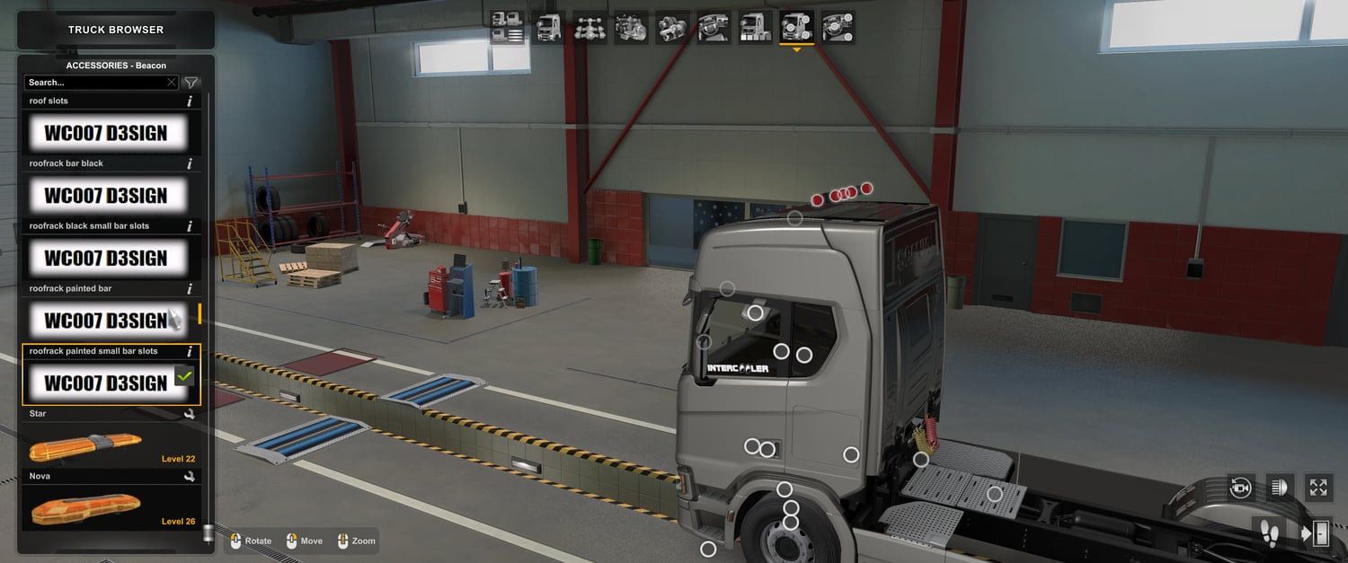 Scania roof rack light bar mod V2 works only with scania nextgen roof rack mod , dont work alone and without this mod: