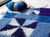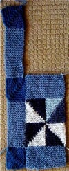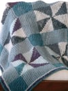 Use as a baby blanket, lap blanket, wrap, or simply something to cuddle up in. There are no seams to be sewn. When you’re done knitting the pinwheels and edges, you can move right into knitting the border without any fuss. At most, you’ll be knitting with four colors at once, so the Intarsia bits aren’t too bad, fairly easy to manage. With all the small areas of color, it’s a great way to use up odd bits of yarn from your stash. Instructions included for making a larger blanket, and changing the gauge.
