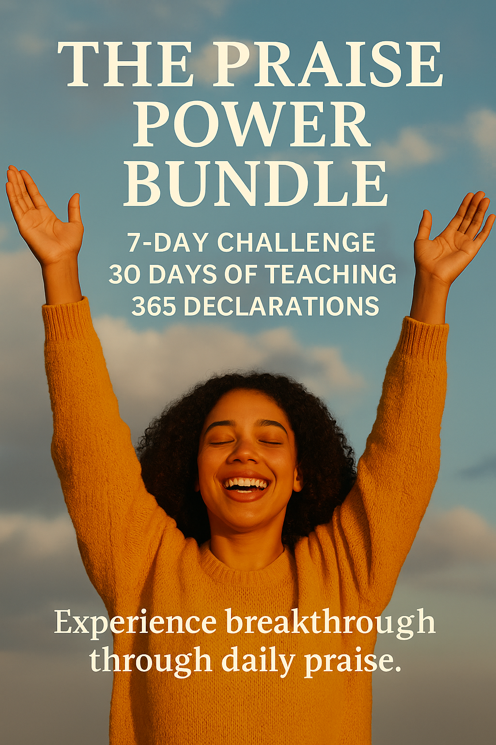 Start small with a 7-day challenge, dive deeper with 30 days of teaching, and anchor your year with 365 daily declarations. A complete praise lifestyle in one bundle.