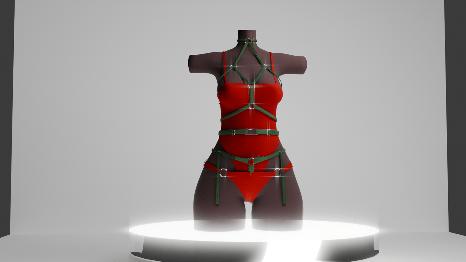 Hello!! This is me learning how to make clothes~ The mistletoes are not joined to the set so they are toggleable, as well as the panties.