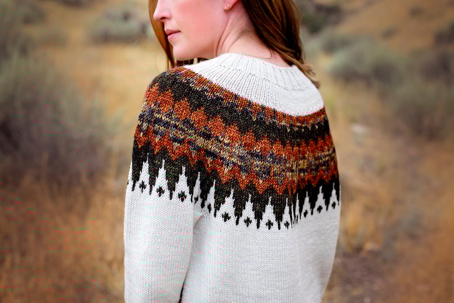 Sevier is the perfect fall and winter sweater! A fun and engaging colorwork yoke, knit out of the gorgeous Madelinetosh Tosh DK yarn, make this a knit you won’t want to put down! I chose colors that remind me of fall…choose colors that speak to you!