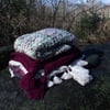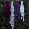 The Endurance Shawl, entirely comprised of garter stitch to form an asymmetrical triangle, is the most basic of the four designs.
