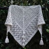 The Patience Shawl, comprised of detailed lace motifs to create a top-down triangle, is the most detailed, time-consuming, and difficult of the four designs.