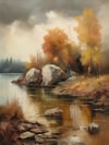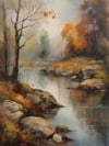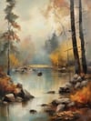8 wall art paintings,Autumn Lake,Forest Lake, Vintage Oil Painting, Farmhouse Wall Decorations, Antique Landscape, Vintage Landscape Oil Painting.
