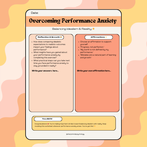 Whether it’s public speaking, interviews, exams, or showing up fully in your work, performance anxiety can keep even the most capable people feeling frozen, flustered, or not enough. This digital worksheet is your step-by-step guide to reclaiming your voice and power — without pressure or perfectionism.
