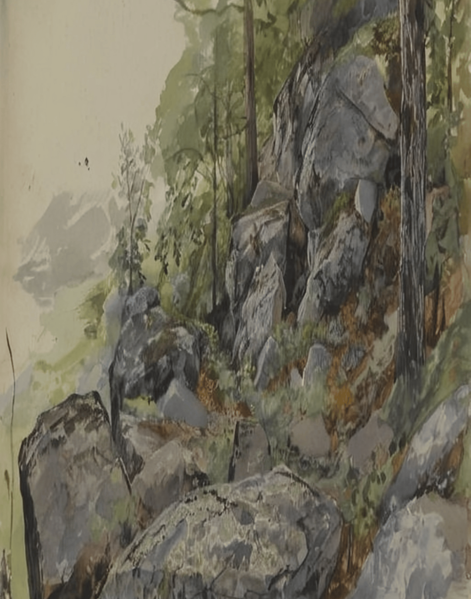 Rustic Rocky Landscape, Vintage Landscape, Nostalgic Nature, Cool Nature, Rustic natural Landscape, Painting.