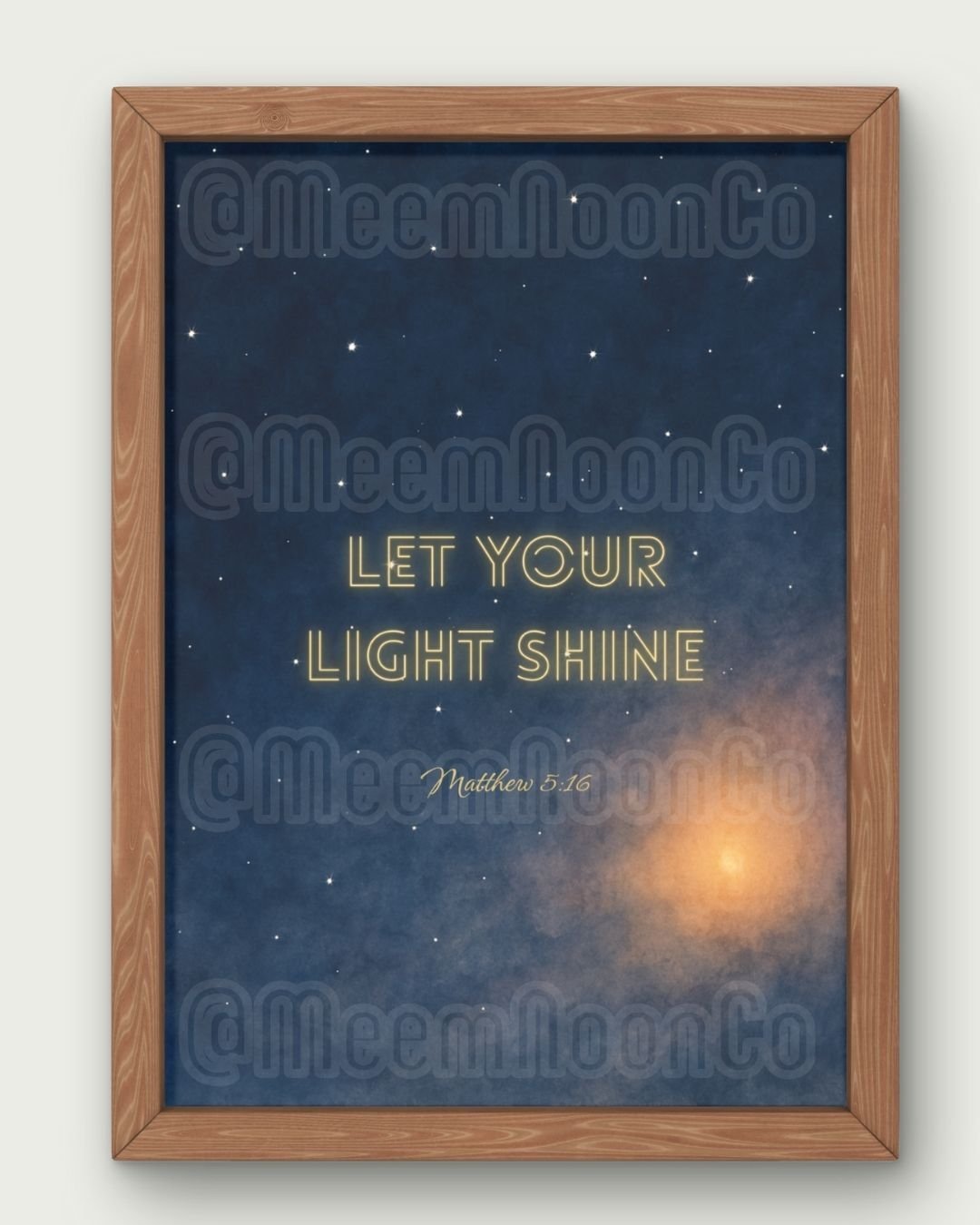 Let your light shine print, Matthew 5:16 wall art, Christian motivation, scripture printable, digital faith art, A4 inspirational quote, spiritual home décor, light and grace print, Christian gift idea, minimalist bible verse