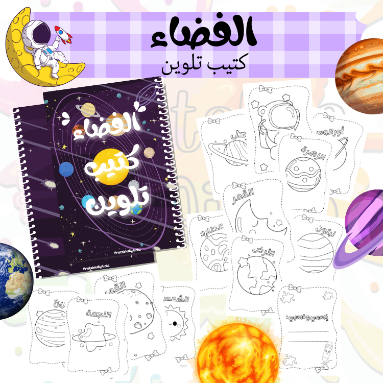 كتيب تلوين الفضاء للأطفال، كراسة تلوين الكواكب، رسومات تلوين النظام الشمسي، تعليم الفضاء والتلوين، نشاط تلوين رواد الفضاء، تلوين الشمس والقمر، تلوين علمي للأطفال، كتب تلوين قابلة للطباعة PDF، نشاطات تعليمية ممتعة للمدرسة والمنزل