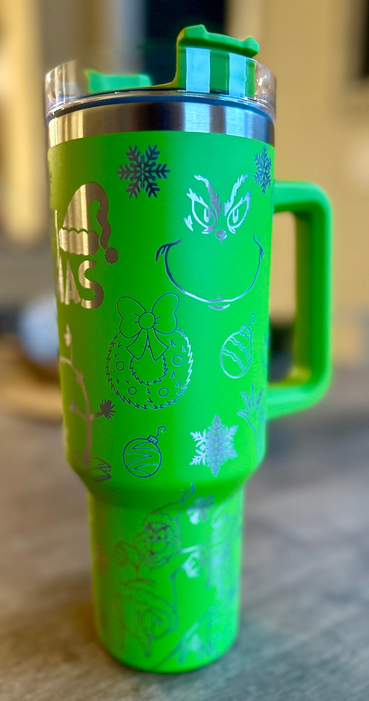 This listing is for an instant digital download for our Grinch Themed Wrap digital file to be used on a Laser Engraving machine.