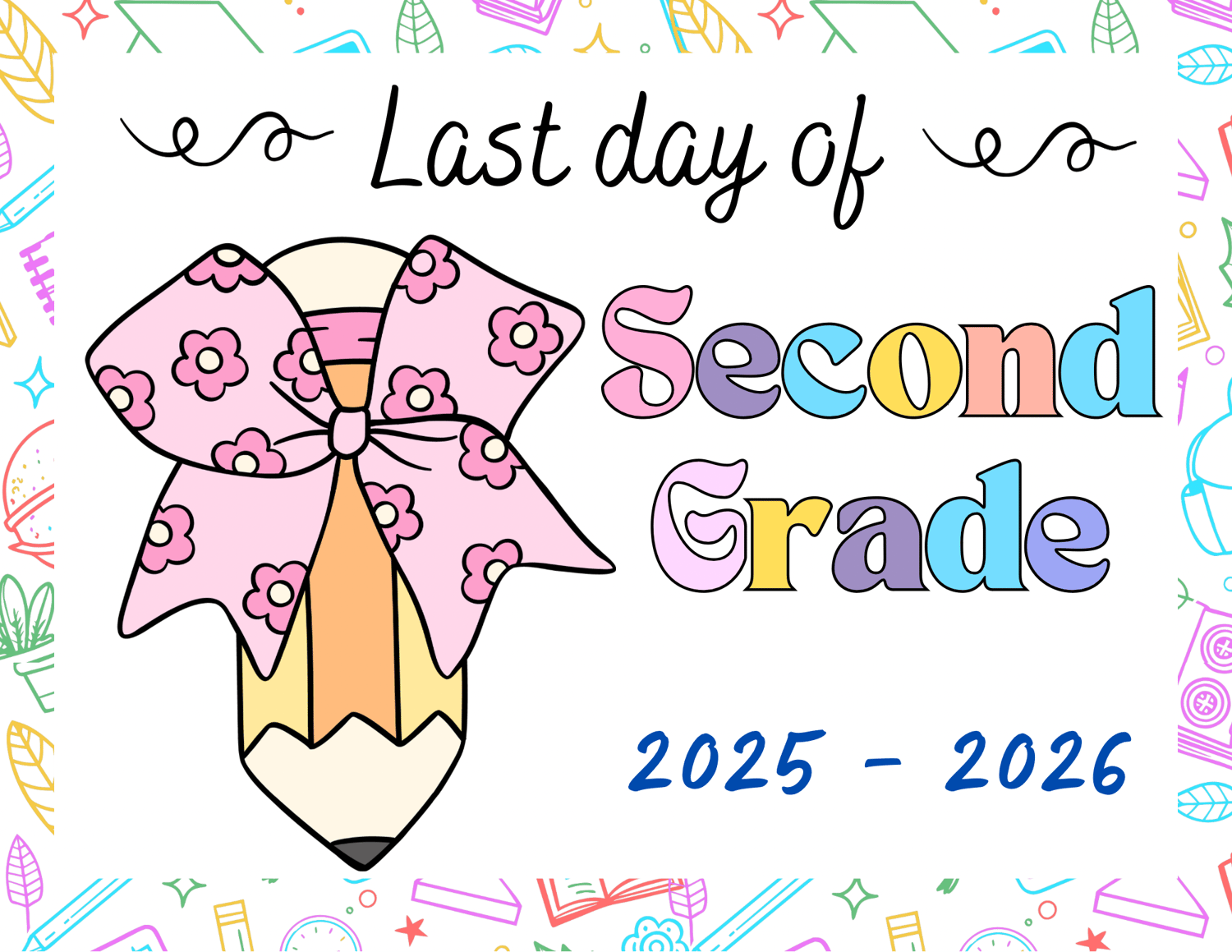 Second Grade Back to School sign Printable School Sign School Photo Prop for kids First Day & Last Day of School Sign – Printable PDF for Kids