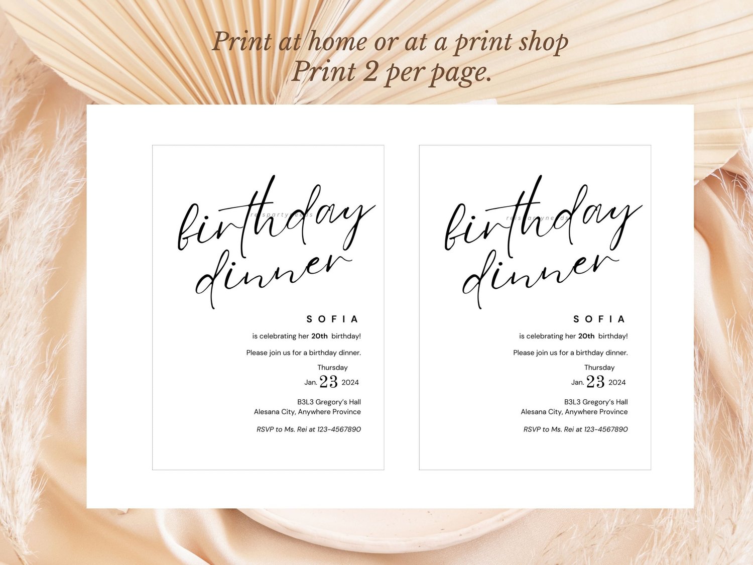 Birthday Dinner Invitation, Editable Birthday Dinner Digital Invite, Dinner Invitation Template, Minimal Birthday Invite, Any Age Invite