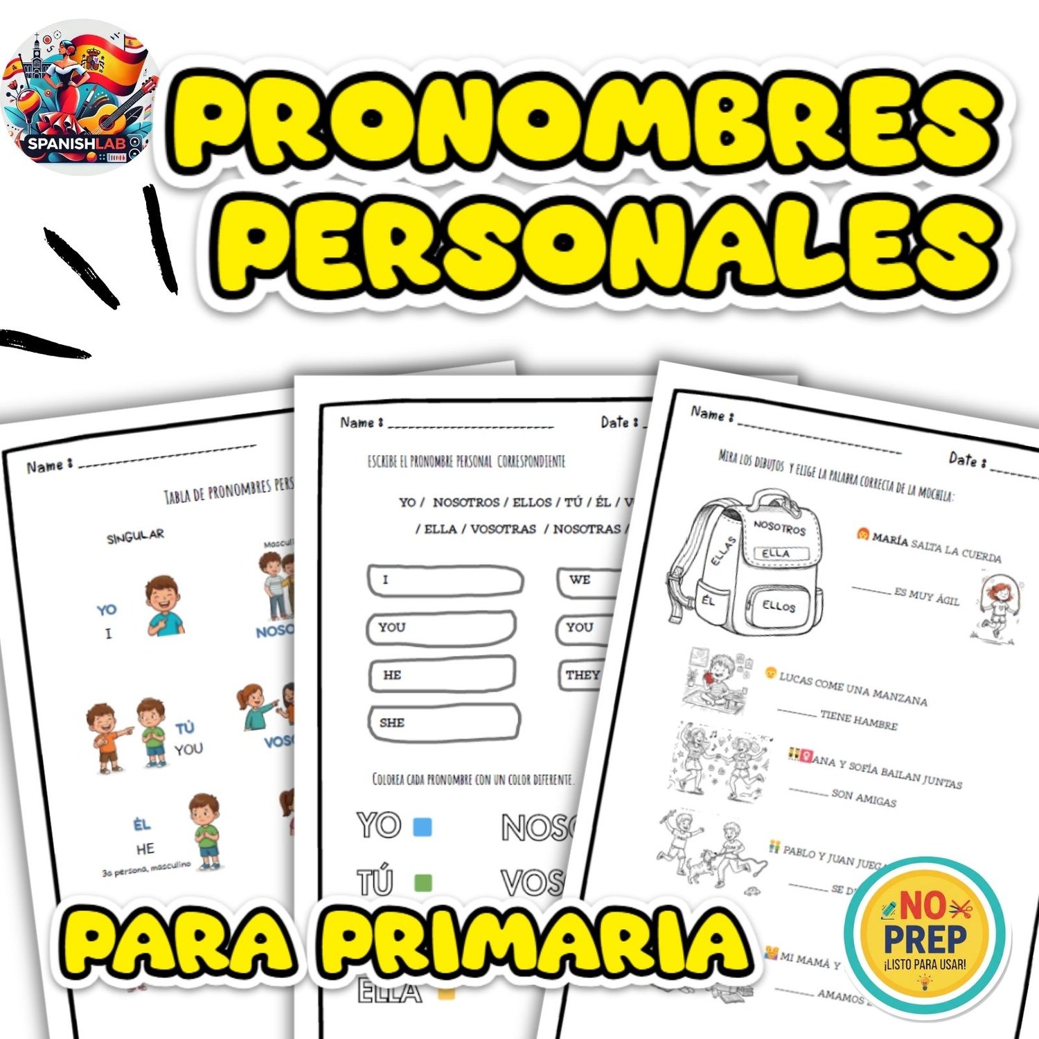 Spanish Personal Pronouns Activities| Spanish Grammar for Primary, 1-3 grades