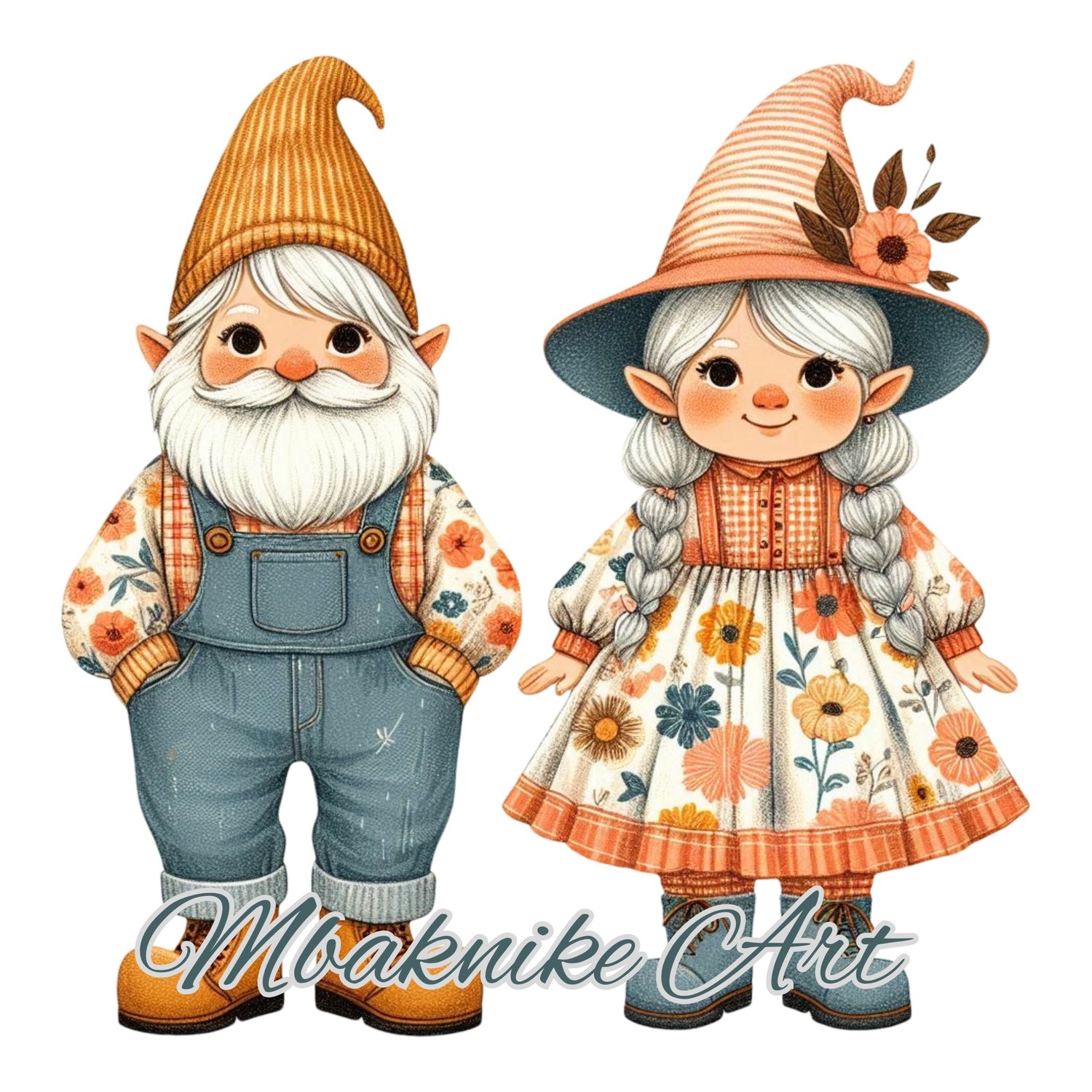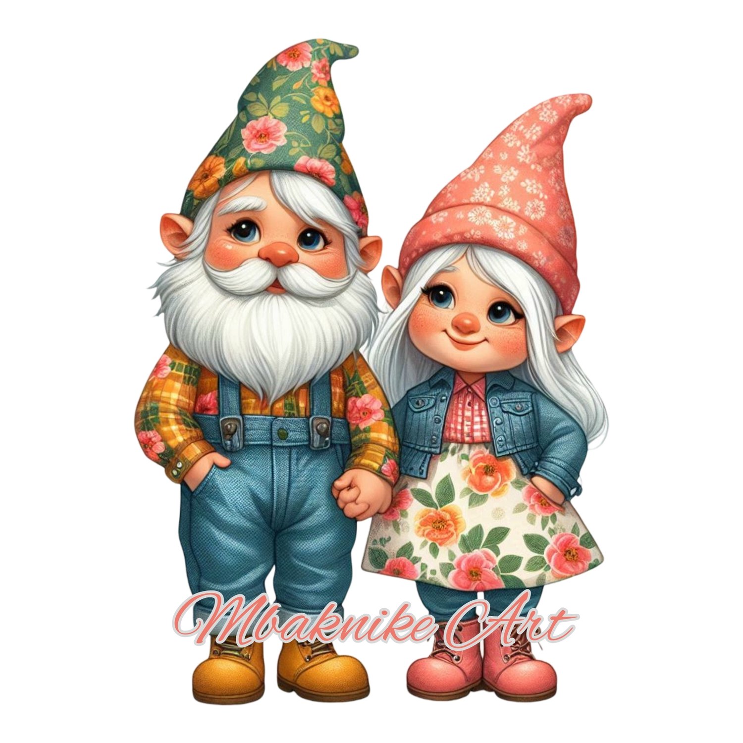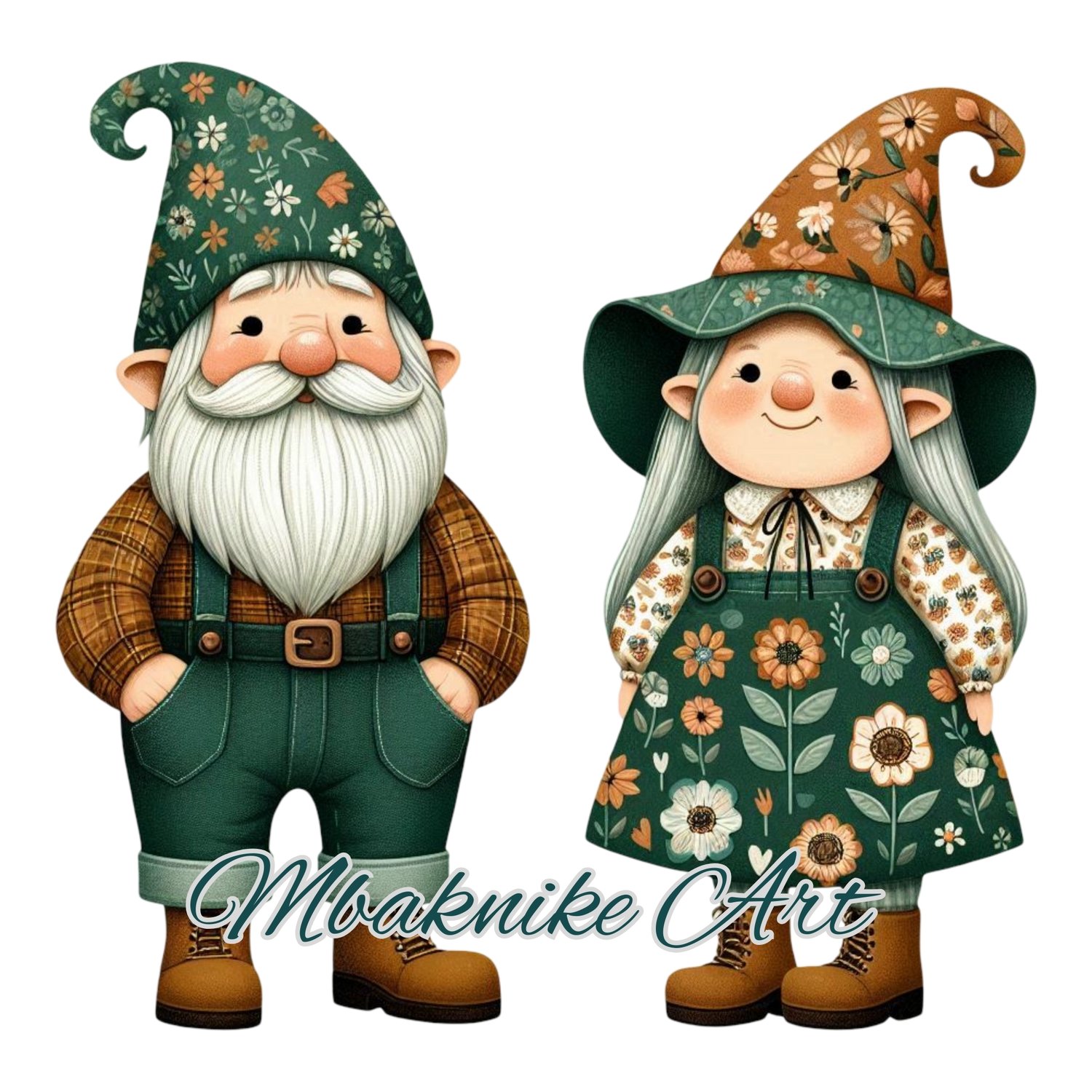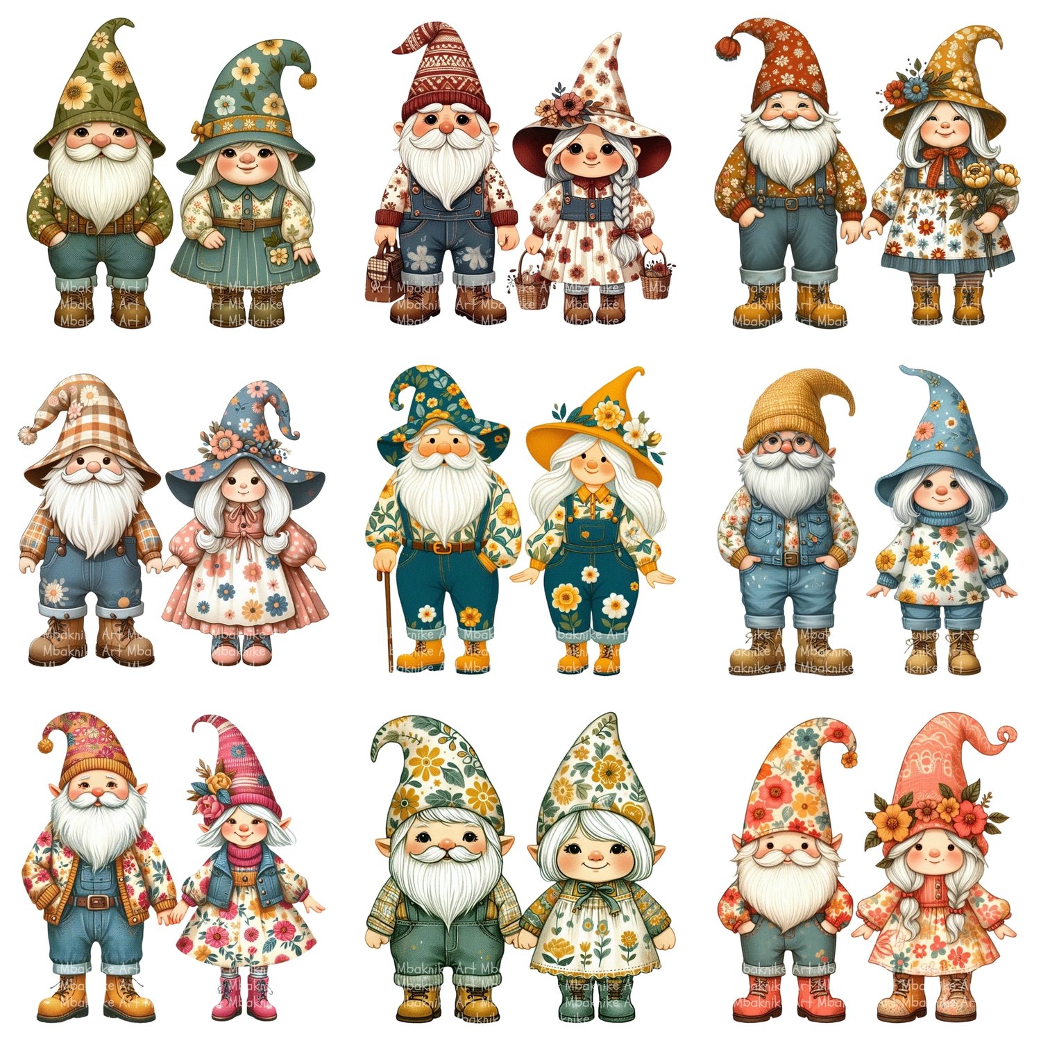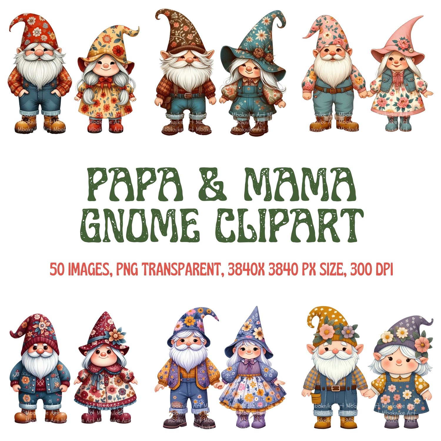 This digital product includes 50 images of Papa Mama Gnome Clipart in PNG Transparent format, 300 dpi, 3840 x 3840 px size.
