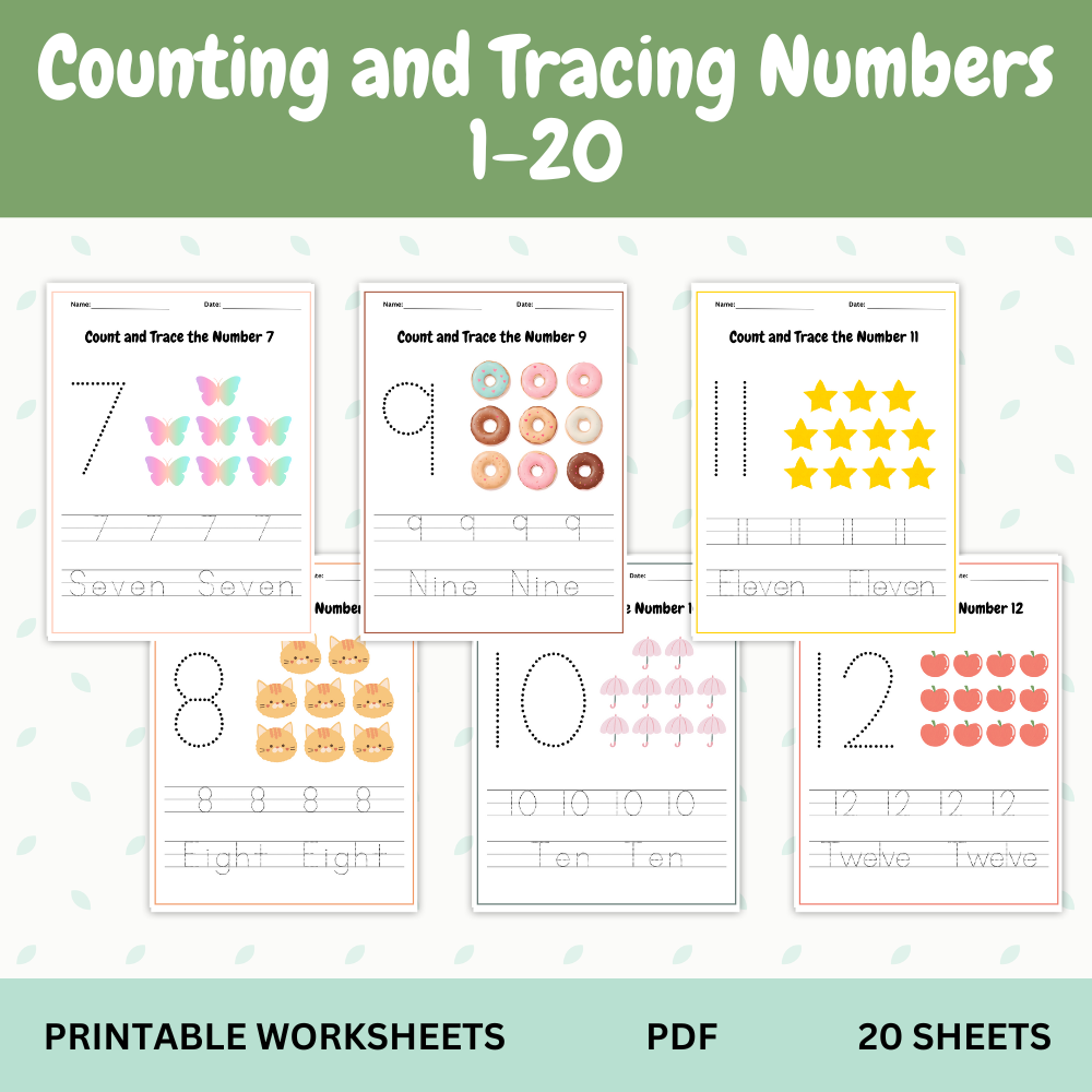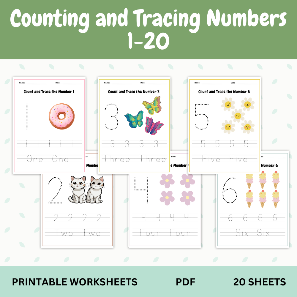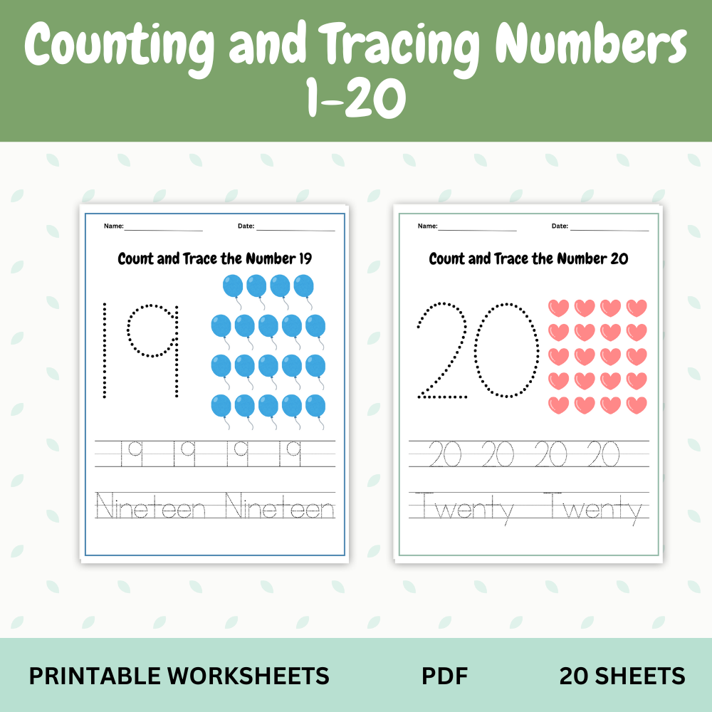 These worksheets provide a fun and engaging way for young children to learn to write numbers 1 to 20, improve hand-eye coordination, and solidify their grasp of basic counting principles.