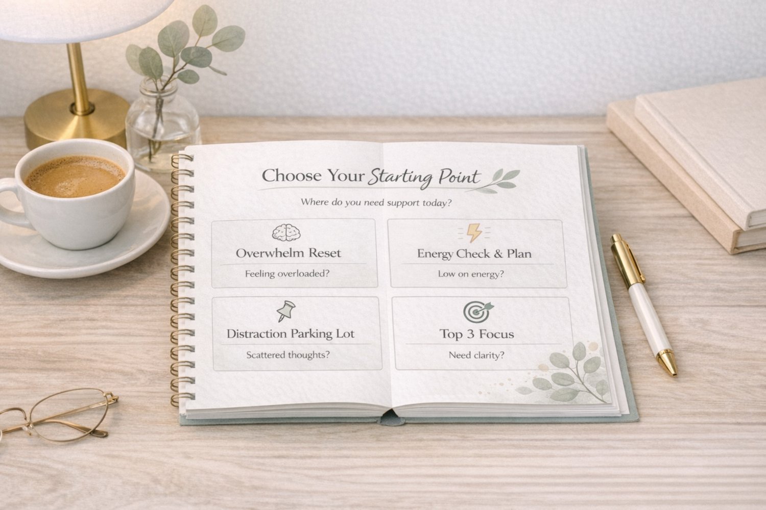 ADHD-Friendly Focus & Reset Planner for Women (Printable + A4/US Letter)