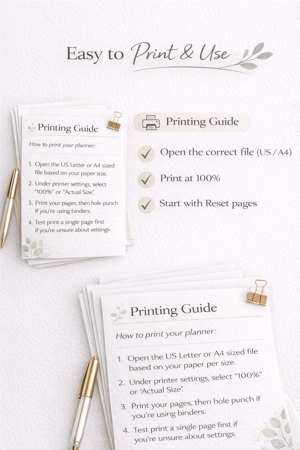 - 1 Printable Planner PDF (US Letter) — 8.5 x 11 in