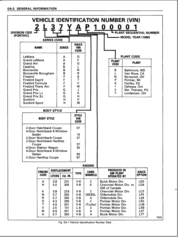 1980 Pontiac Service Manual Supplement All Series Except Phoenix Part No. S-8010