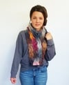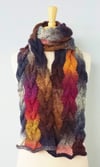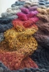 - Yarn: Bulky weight variegated yarn with long color changes; 390 yards. Model shown in Plymouth Gina (100% Wool; 131yds per 100g), 3 skeins, color # 104 Sunset