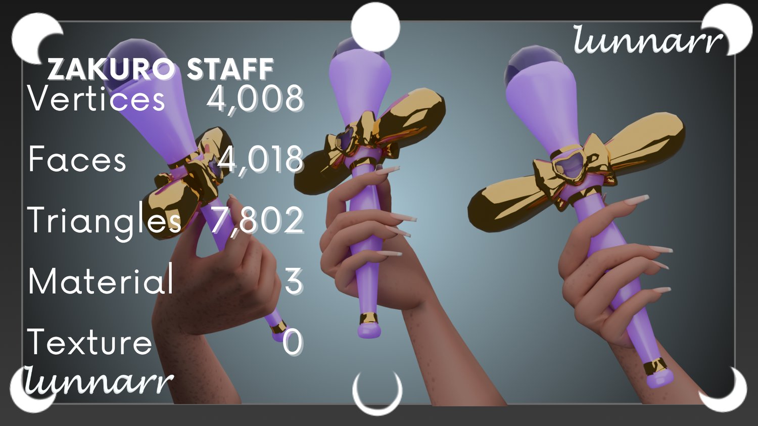 ~(Zakuro Staff)Verts:4,008 / Faces:4,018 / Tris:7,802