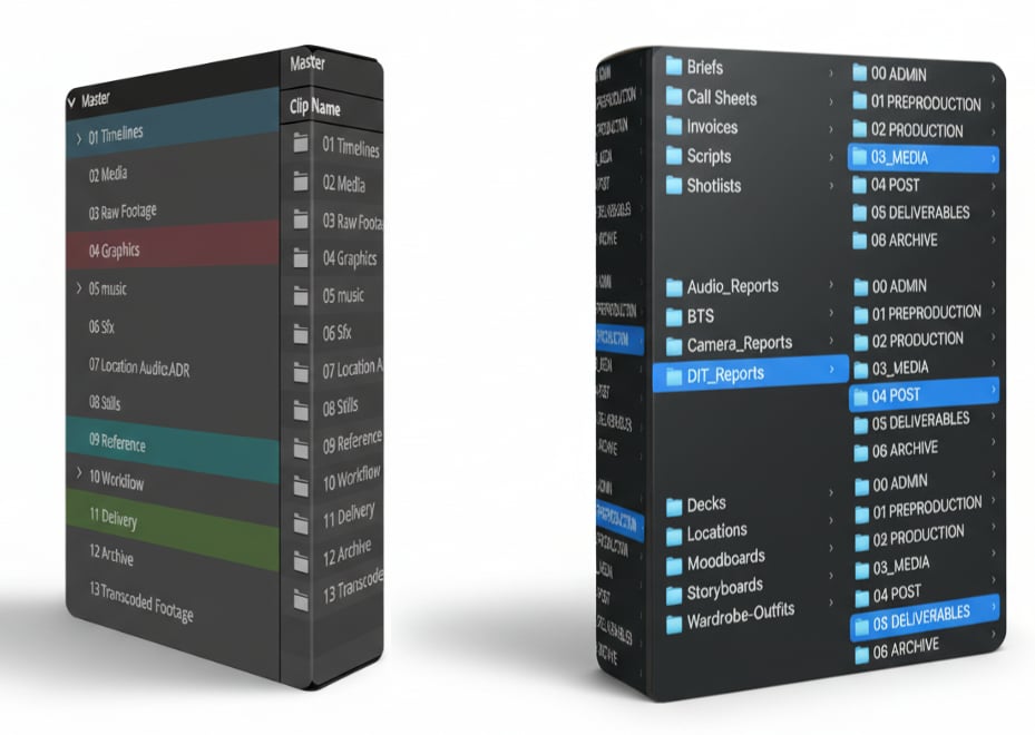 – Pre-production, post, delivery and archive folders