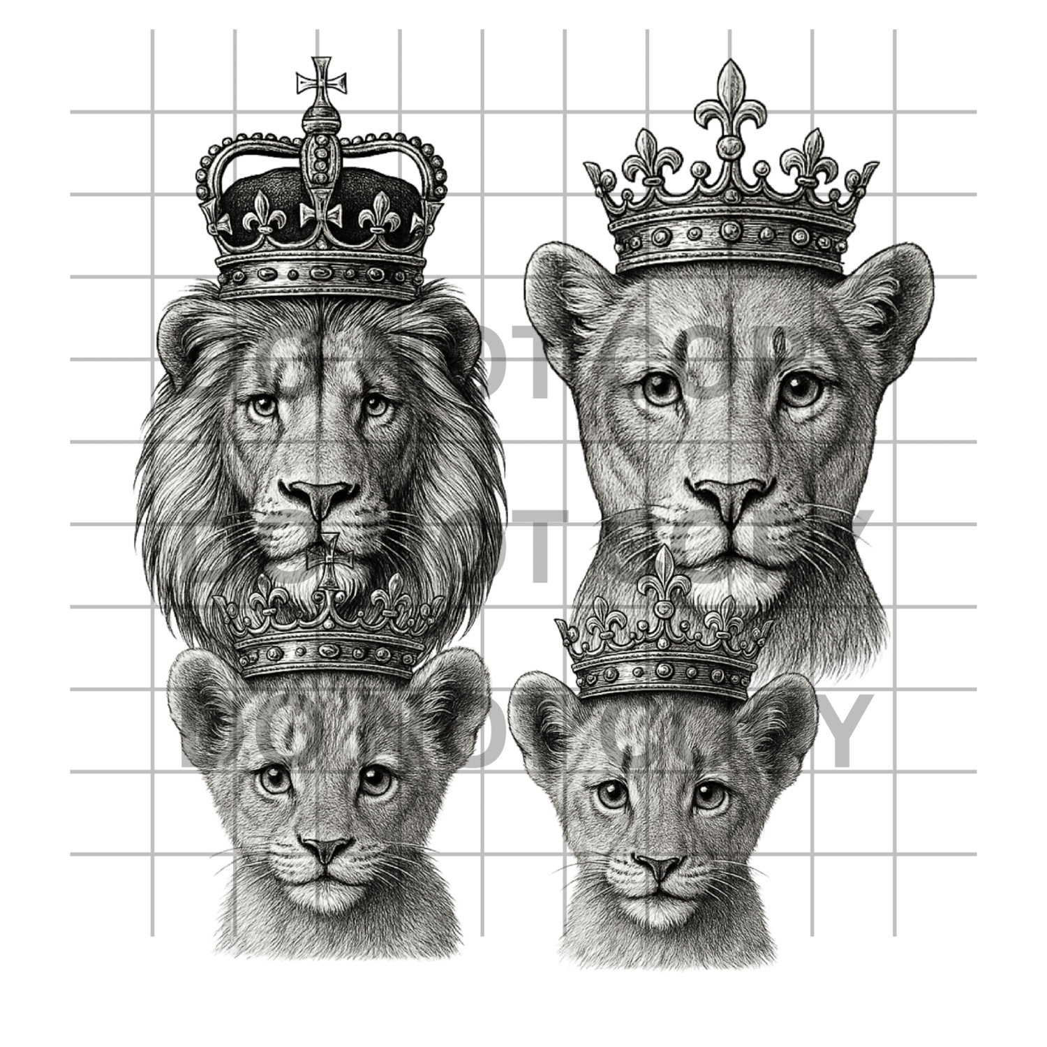 🎨 lion family set of 4 individual clipart with crowns 300dpi high quality designs.