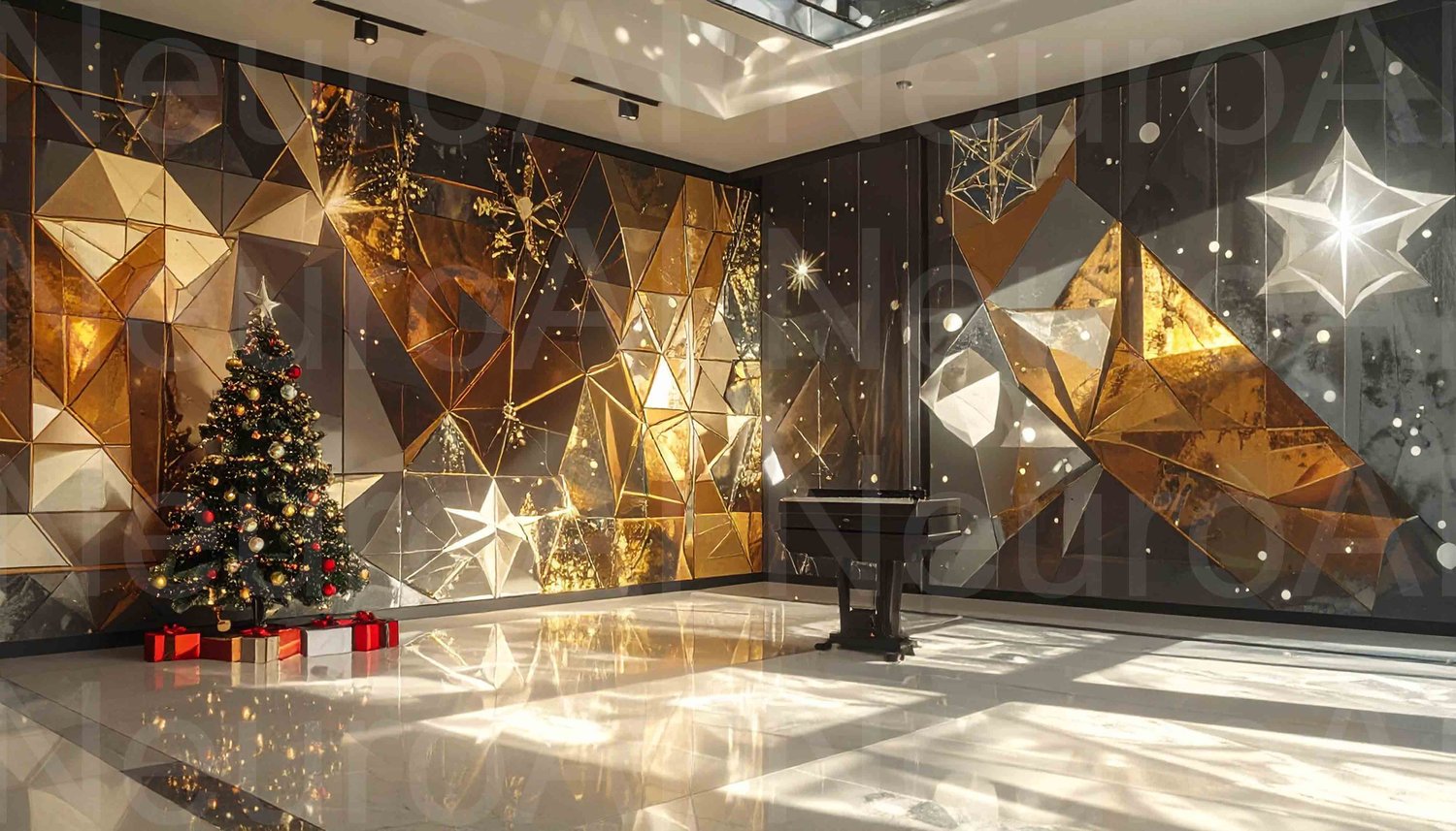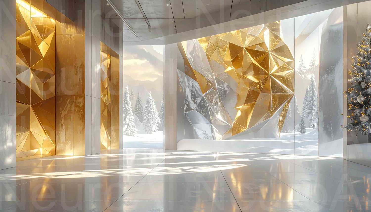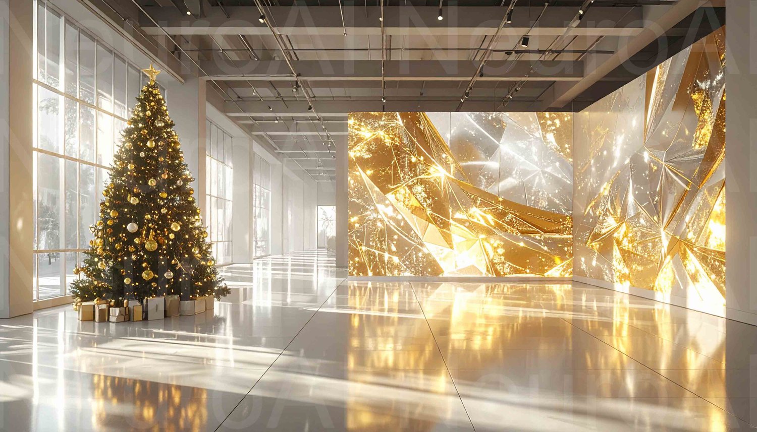 Elegant Christmas tree shines in modern gallery space