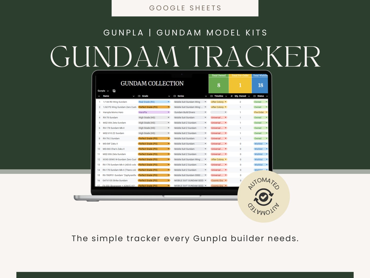 Gundam Tracker Gunpla Tracker Gundam Model Kit Collection Hobby Tracker Google Sheets Template