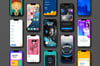 Photorealistic iPhone mockup pack with thirteen flat-lay screens in a tidy grid, editable lights & shadows and Smart-Object layers.