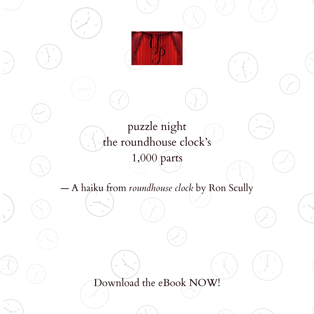 “Questions about time have persisted since, well, the beginning of time. Roundhouse Clock, the intriguing new book by Ron Scully, explores different aspects of time. You’ll learn that not only does the future create the past and the past contains the future, each moment holds a multiplicity of other moments. The author seamlessly weaves his storyline in a deceptively easy-going manner, using a variety of short-form poems. Once you may have thought time could stand still, but in fact, it’s eppur Si muovo.”