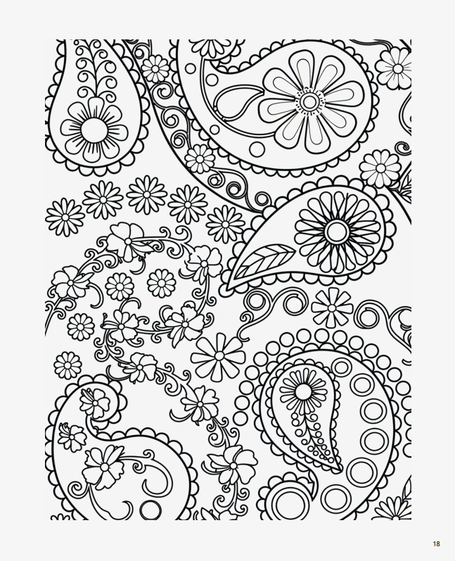 Кожен малюнок розроблено так, щоб дарувати спокій і баланс. Малювання візерунків пейслі допомагає зняти напругу, заспокоїти думки й зосередитись на красі ліній. Ідеально підходить для вечорів із чаєм або медитаційної творчості.