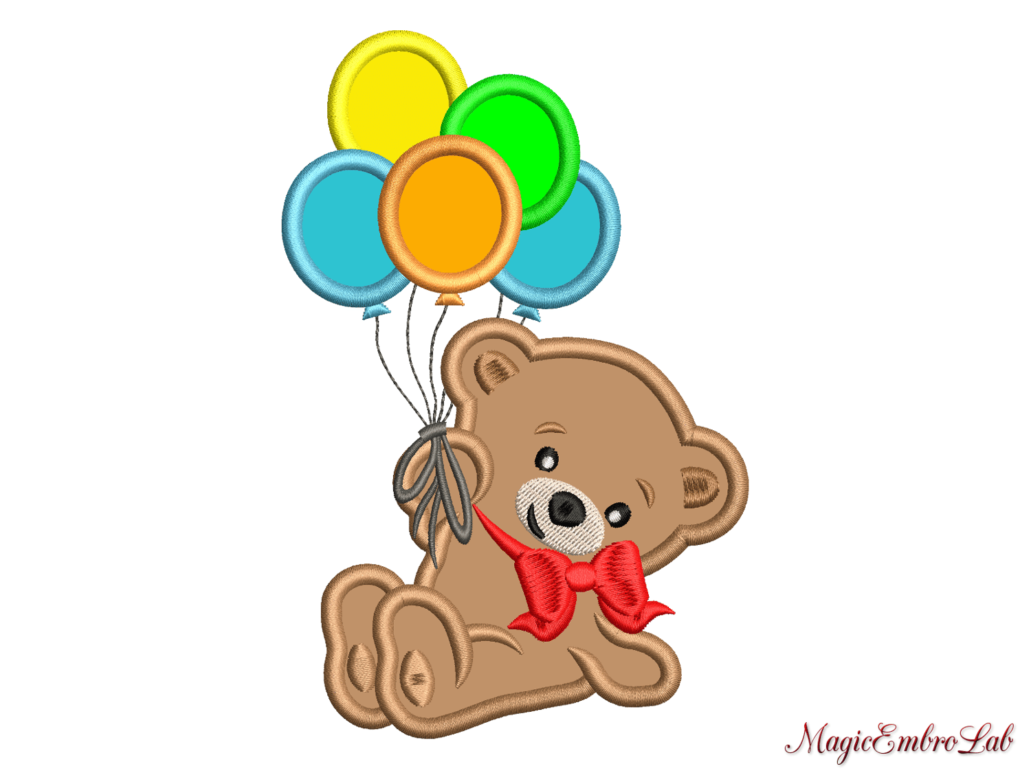 Balloon Bear APPLIQUE, 6 sizes, Instant Download