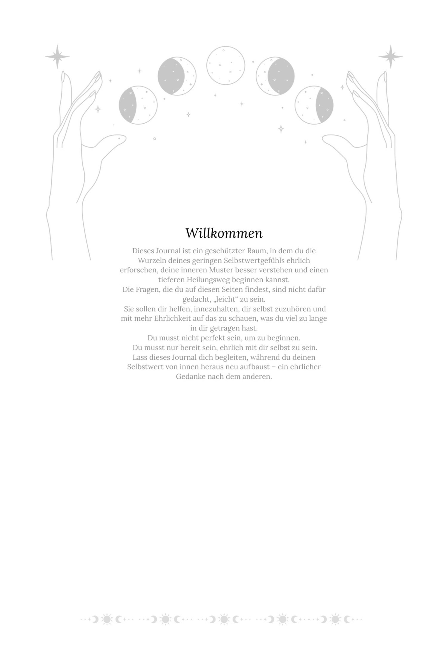 Wenn du bereit bist, dir selbst tiefer zu begegnen und deinen eigenen Wert neu zu entdecken, kann dieses Journal dich Schritt für Schritt auf diesem Weg begleiten.