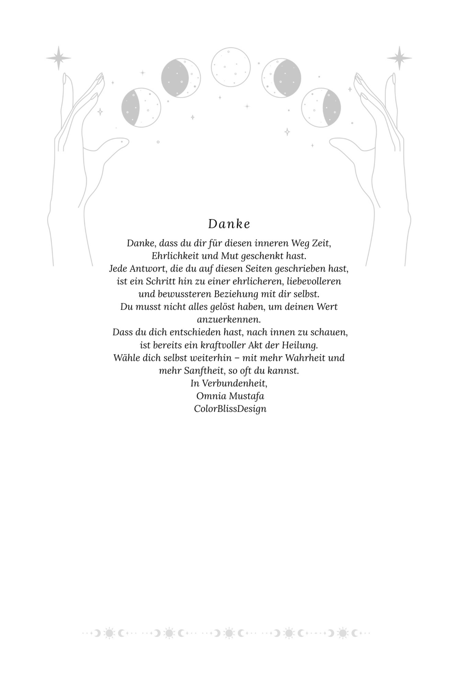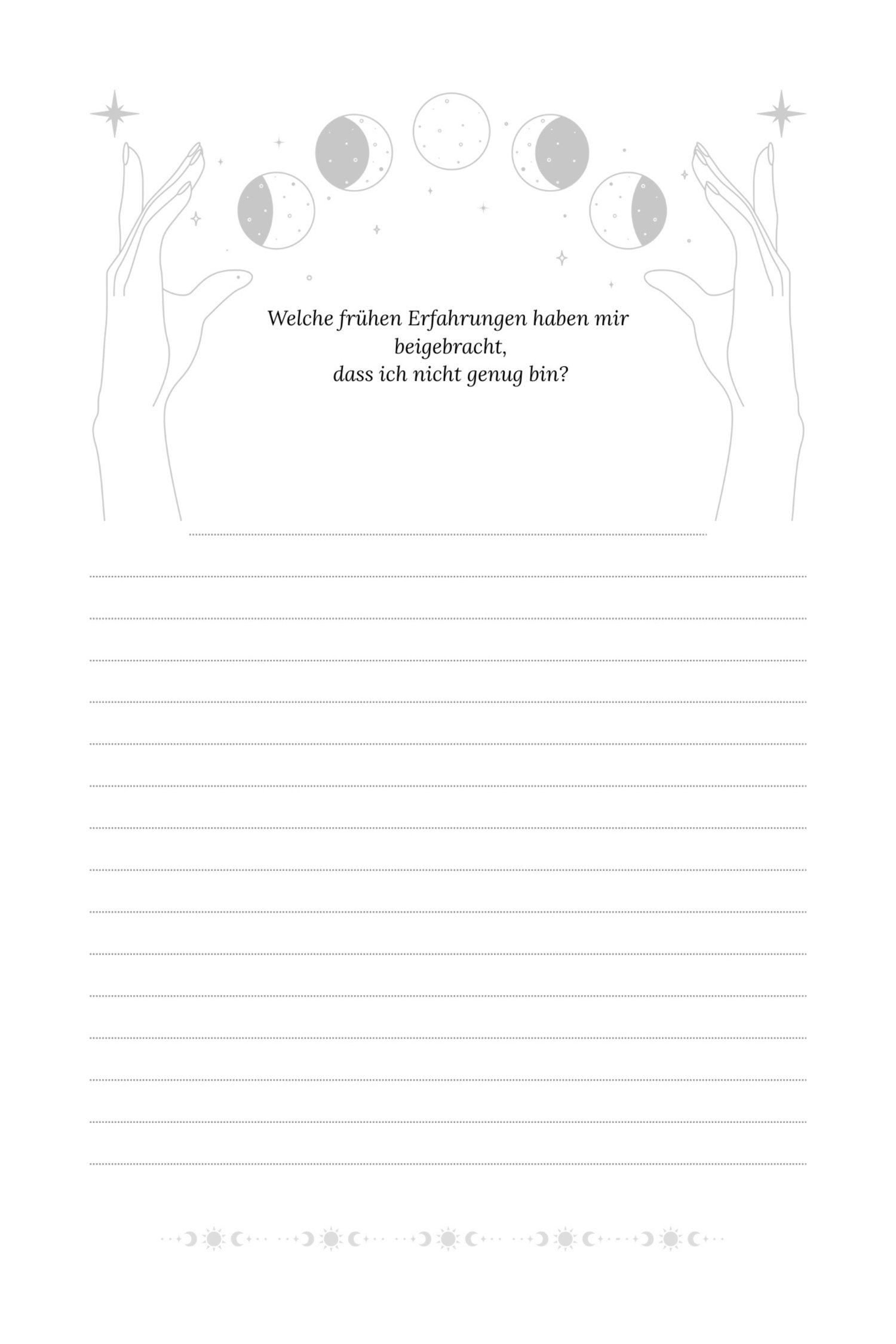 Mit tiefgehenden Fragen, Reflexionsseiten und ehrlichen Impulsen hilft dir dieses Journal dabei, alte Muster sichtbar zu machen, einschränkende Überzeugungen zu hinterfragen und eine gesündere, mitfühlendere Beziehung zu dir selbst zu entwickeln.