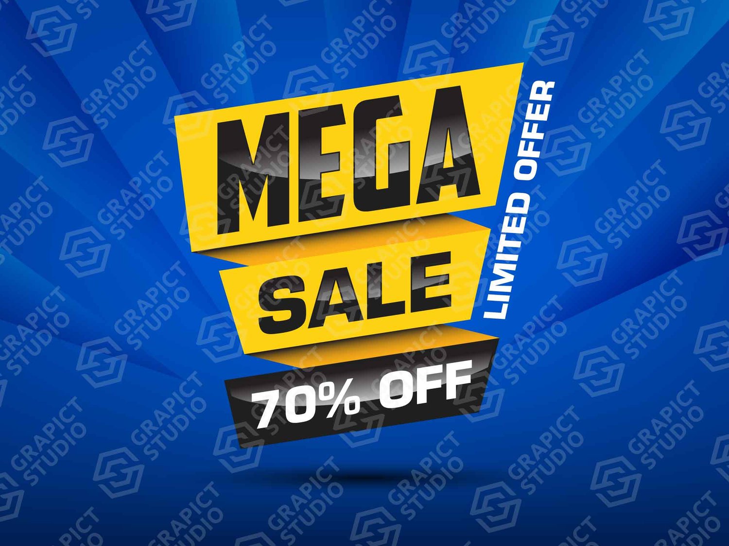Promotion banner design, discount deal offer, marketing sales illustration with text Mega Sale. Design element related to advertising banner, promotional ads post for social media, and shop banner