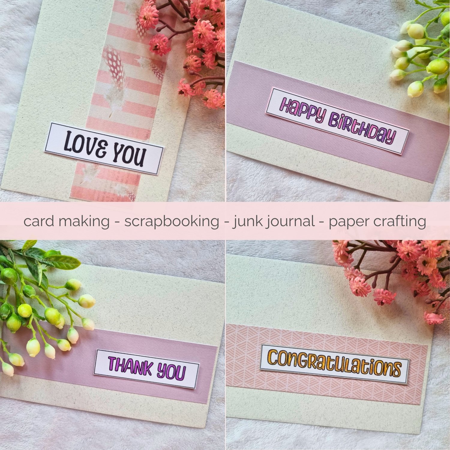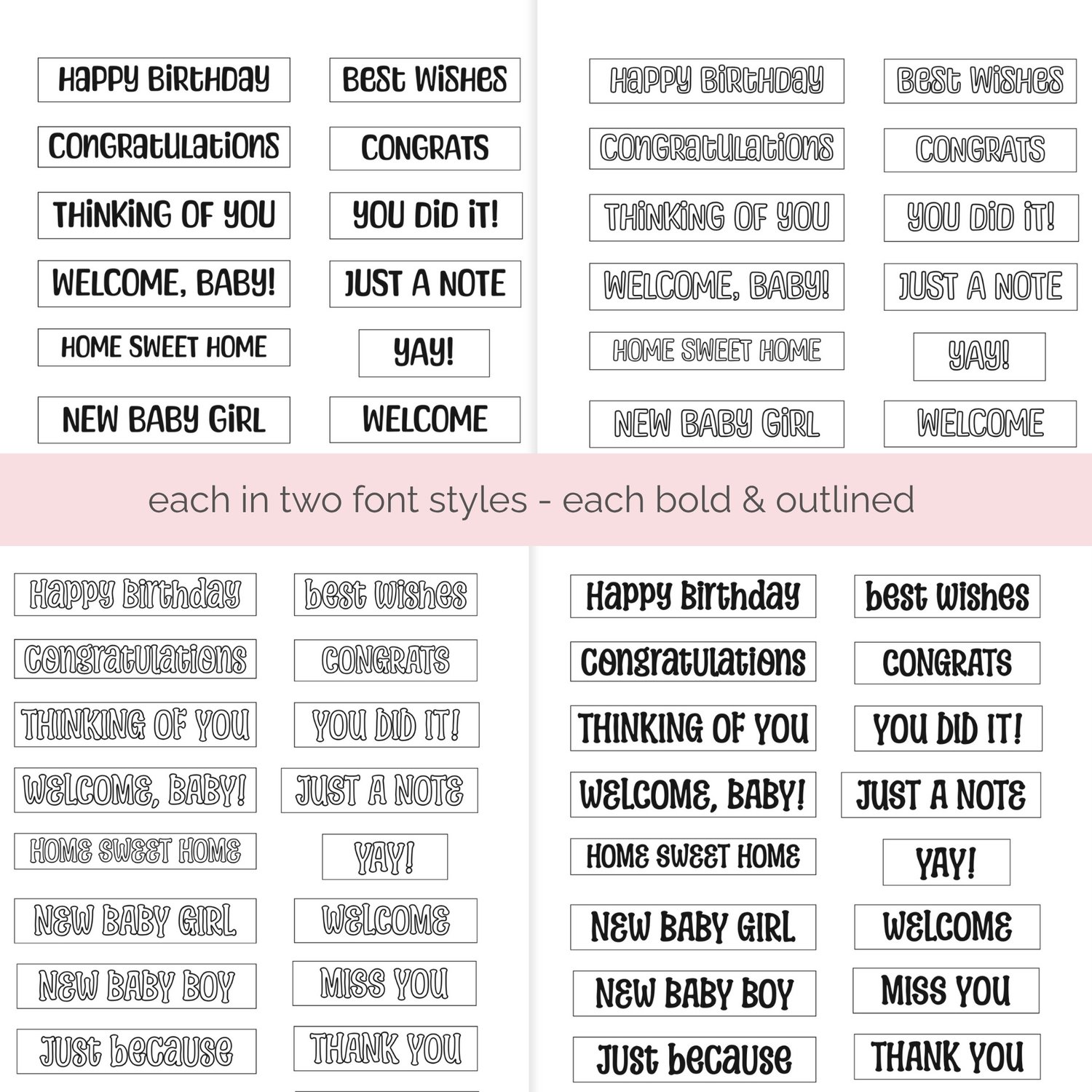 Featuring a fun font styles and phrases for all occasions, they’re perfect for card making, paper crafting, scrapbooking, or decorating your junk journal.