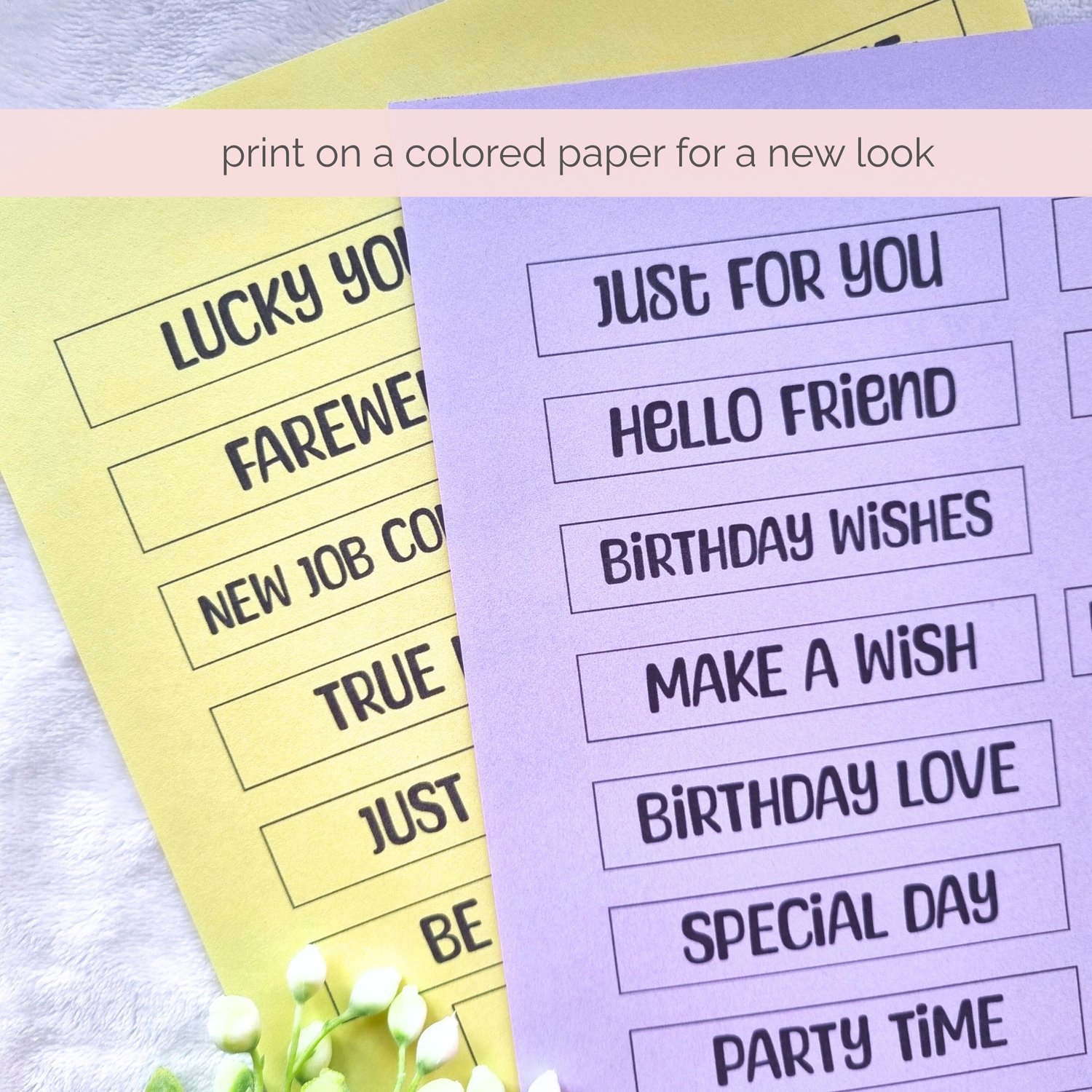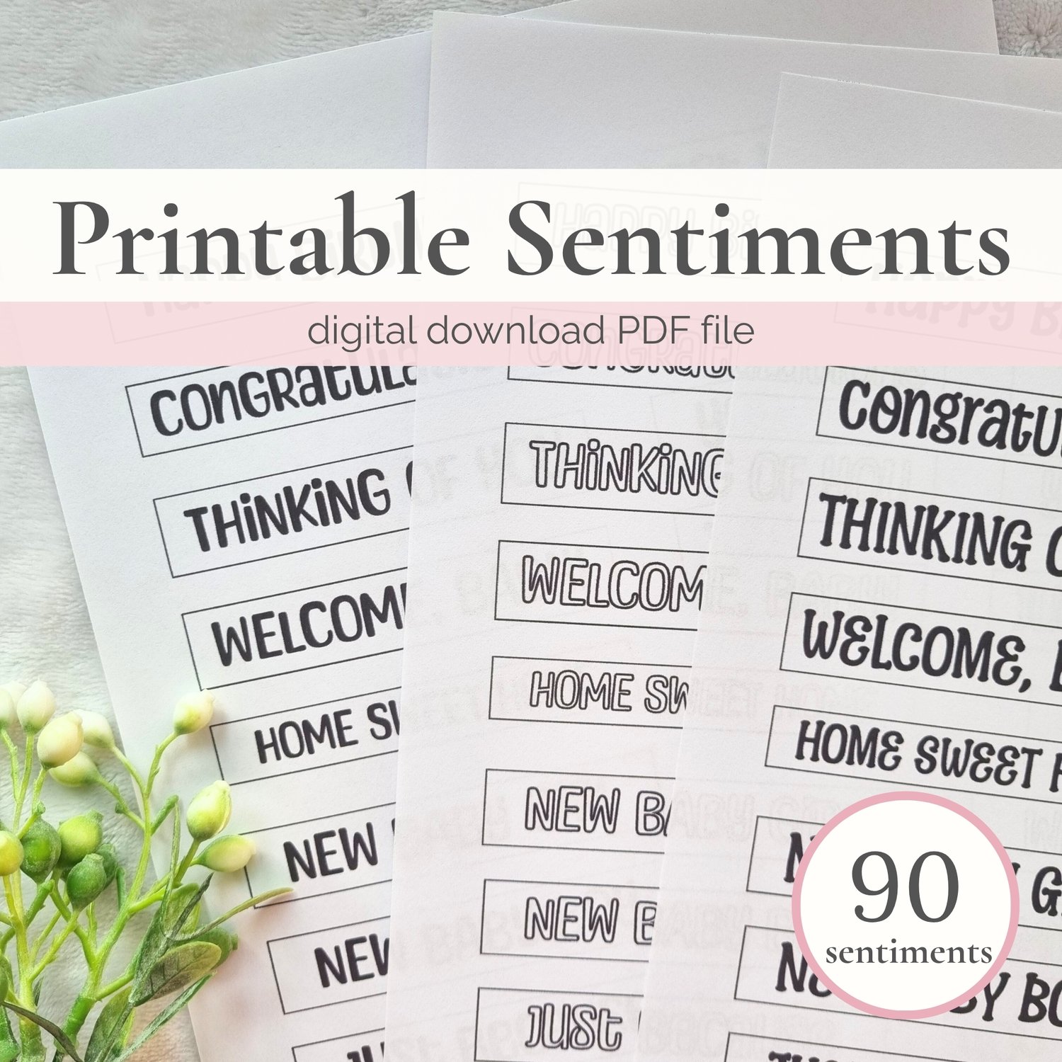 If you love crafting greeting cards but don’t have stamps, a Sizzix, or a Cricut to add fun messages, these printable sentiment embellishments are just what you need.
